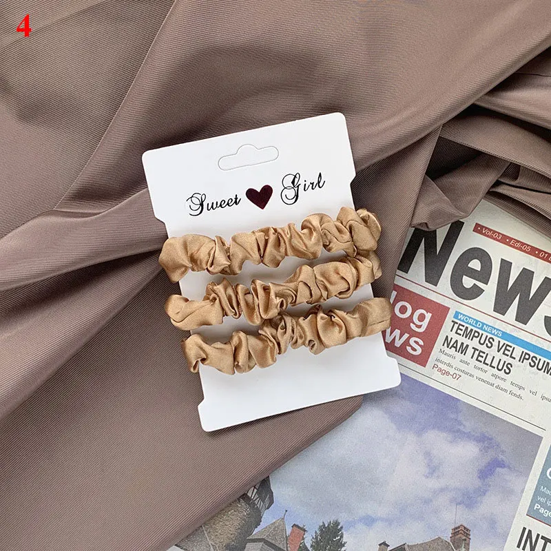 Color: black - Free Shipping 3PCS/Set Satin Silky Scrunchies Hair Rope Luxury Solid Color Elastic Hair Bands Women Hair Accessories Headwear