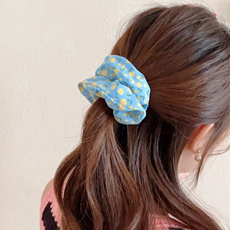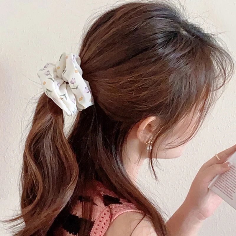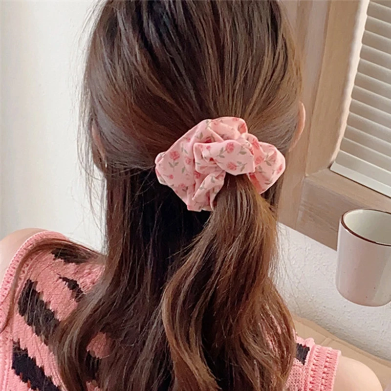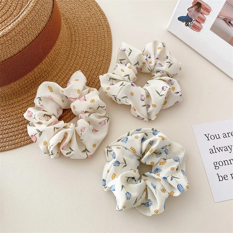 Color: Black - Gentle Sweet Women Floral Hair Ties Scrunchies Tulip Rose Flower Hair Rope Summer Ponytail Holder Rubber Band Hair Accessories