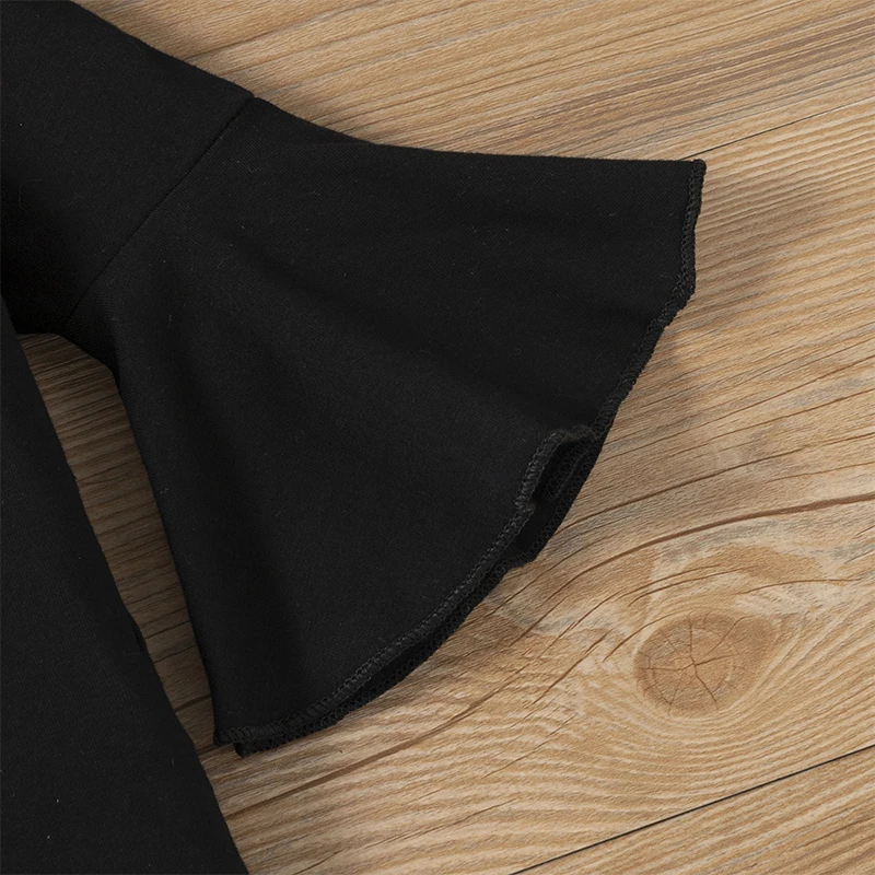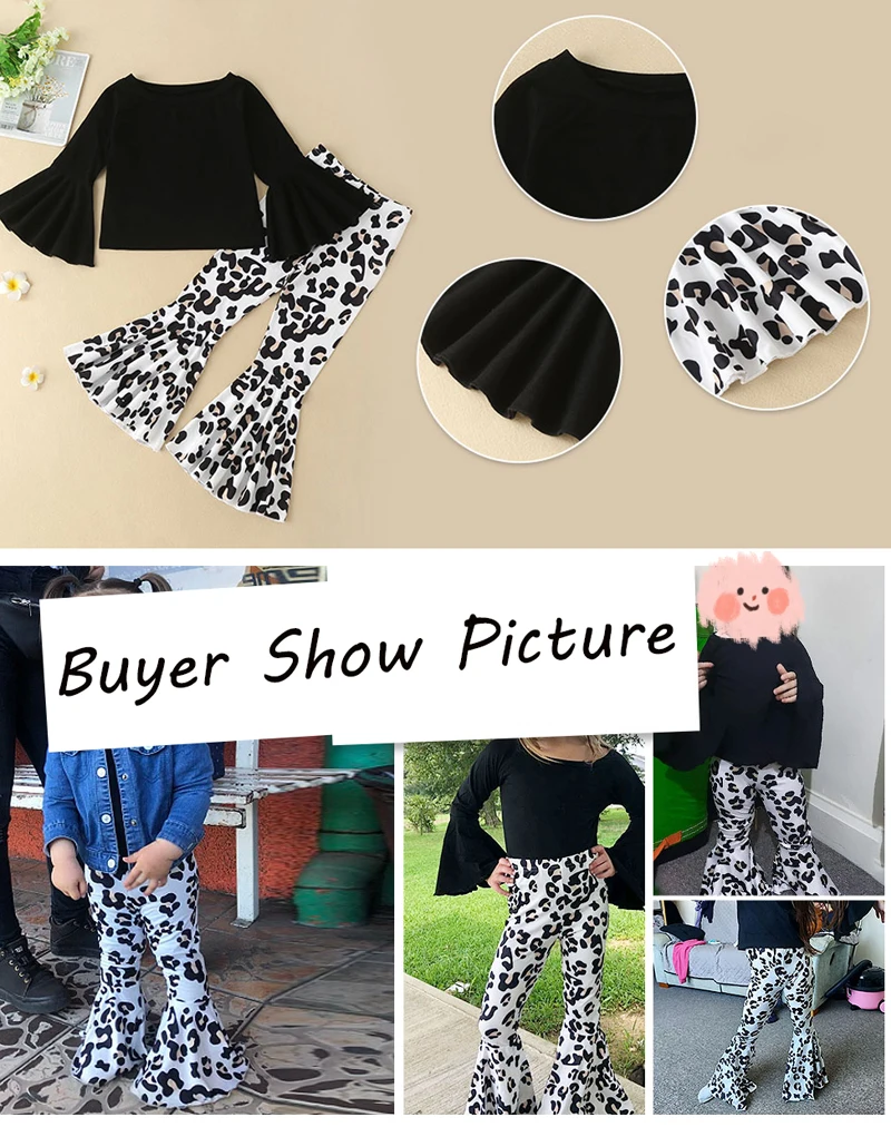 Color: black, Kid Size: 2T - 2pcs Baby Girl Clothes Sets Black Pullover Top + Leopard Print Bell-Bottoms Autumn Children's Clothing For 2 3 4 5 7 8 Years Old