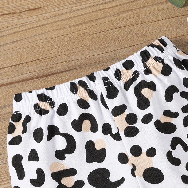 2pcs Baby Girl Clothes Sets Black Pullover Top + Leopard Print Bell-Bottoms Autumn Children's Clothing For 2 3 4 5 7 8 Years Old