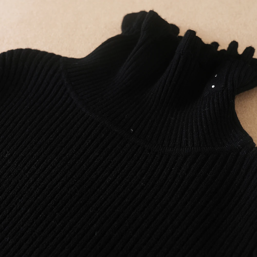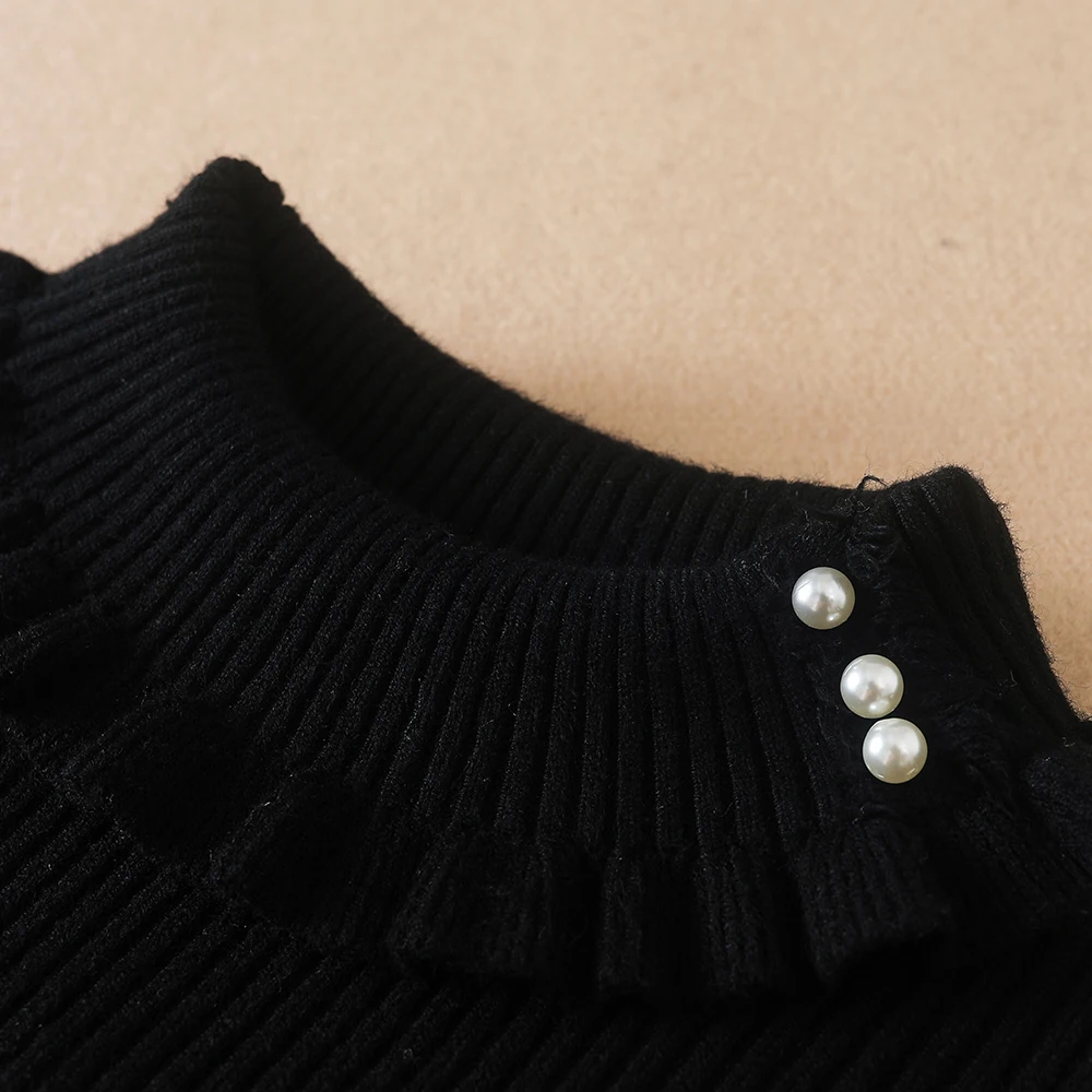 Color: black, Kid Size: 8T - Girls Sweater 2025 New Winter Children Clothes Kids Tops Warm Knitwear Kids Sweater Baby Girls Turtleneck Sweaters