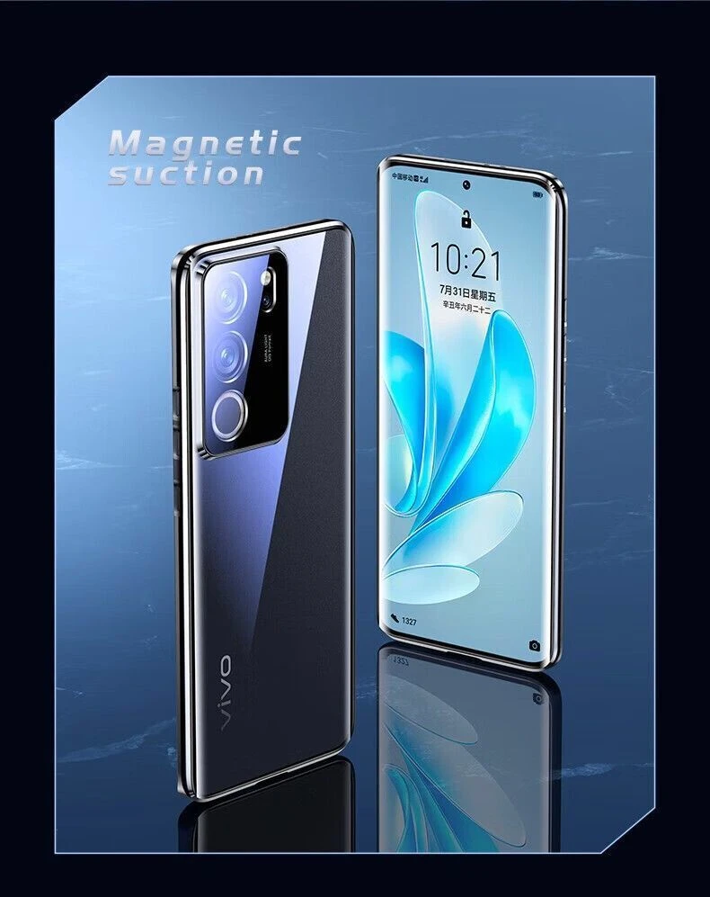360 Full Case For Vivo V29 5G V27 Pro V27E V25 V23 Double Sided Magnetic Adsorption Metal Capa Tempering Glass Clear Phone Cover