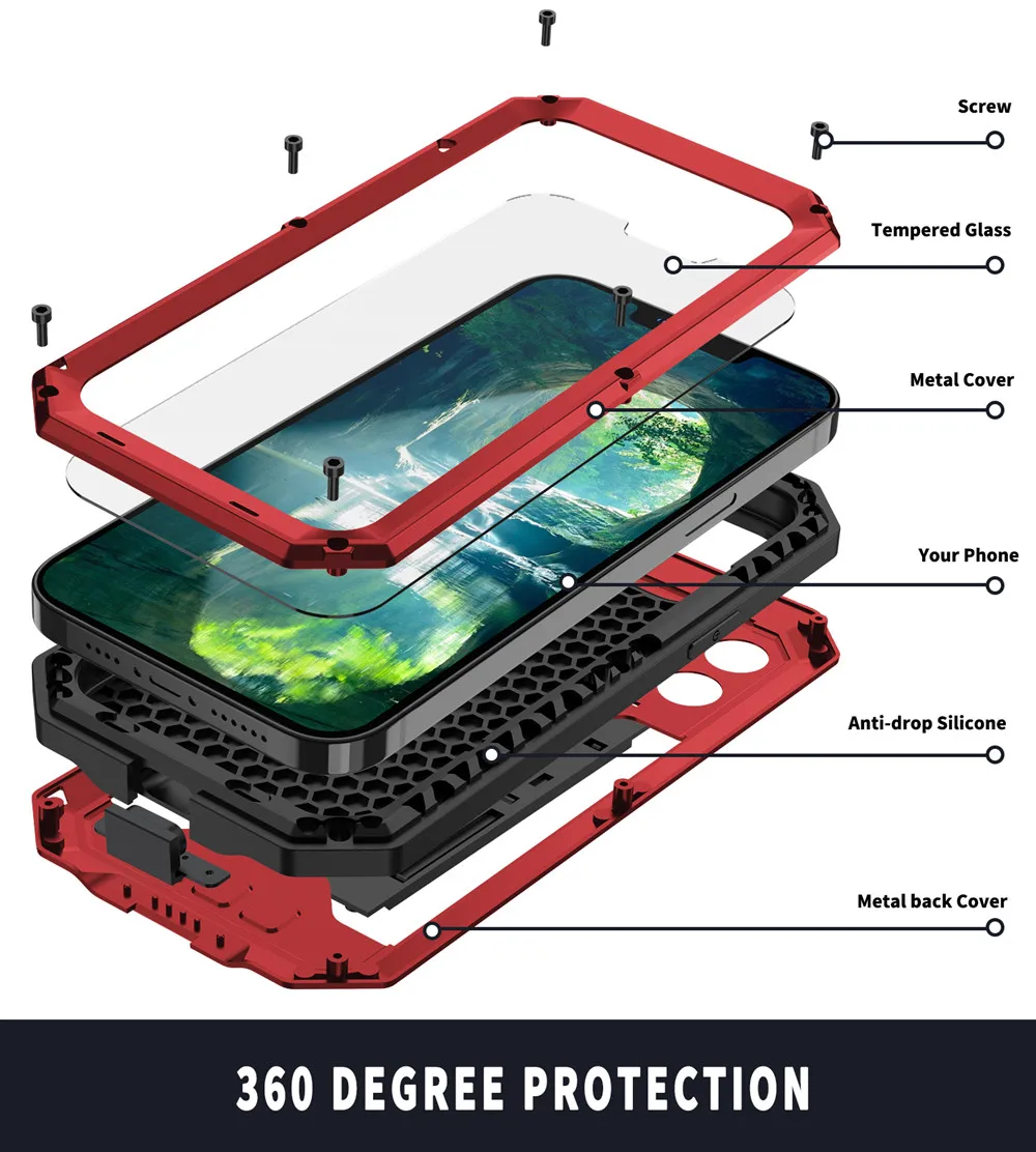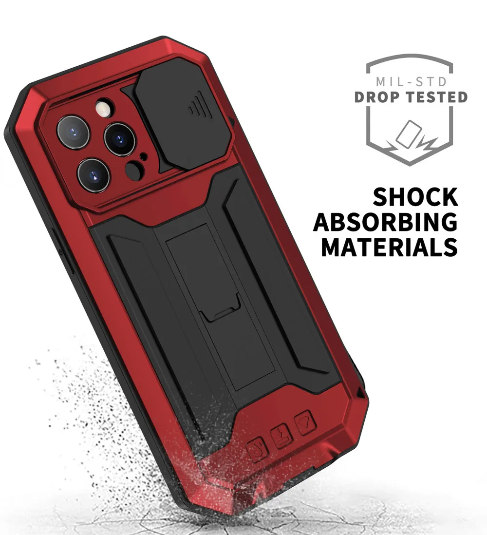 Color: Black, Material: Canvas - Heavy Duty Metal Aluminum Case For iPhone 14 13 15 Pro Max Military Grade Shockproof Bumpers Armor Kickstand Camera Slider Cases