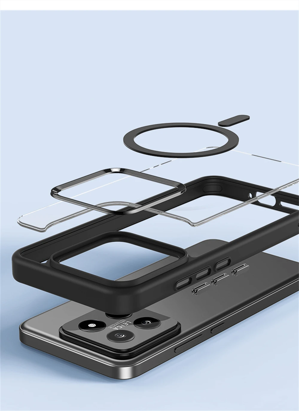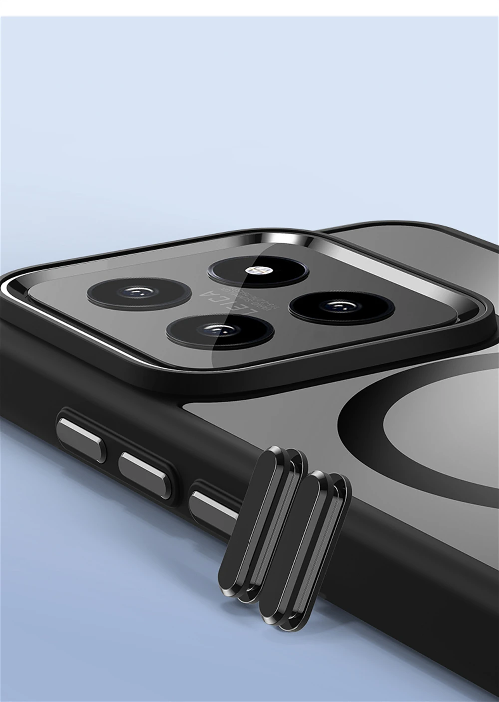 Color: Black, Material: Canvas - Luxury HD Transparent Shockproof Bumper Case For Xiaomi Mi 14 Pro Ultra For Magsafe Magnetic Wireless Charge Back Cover Shell