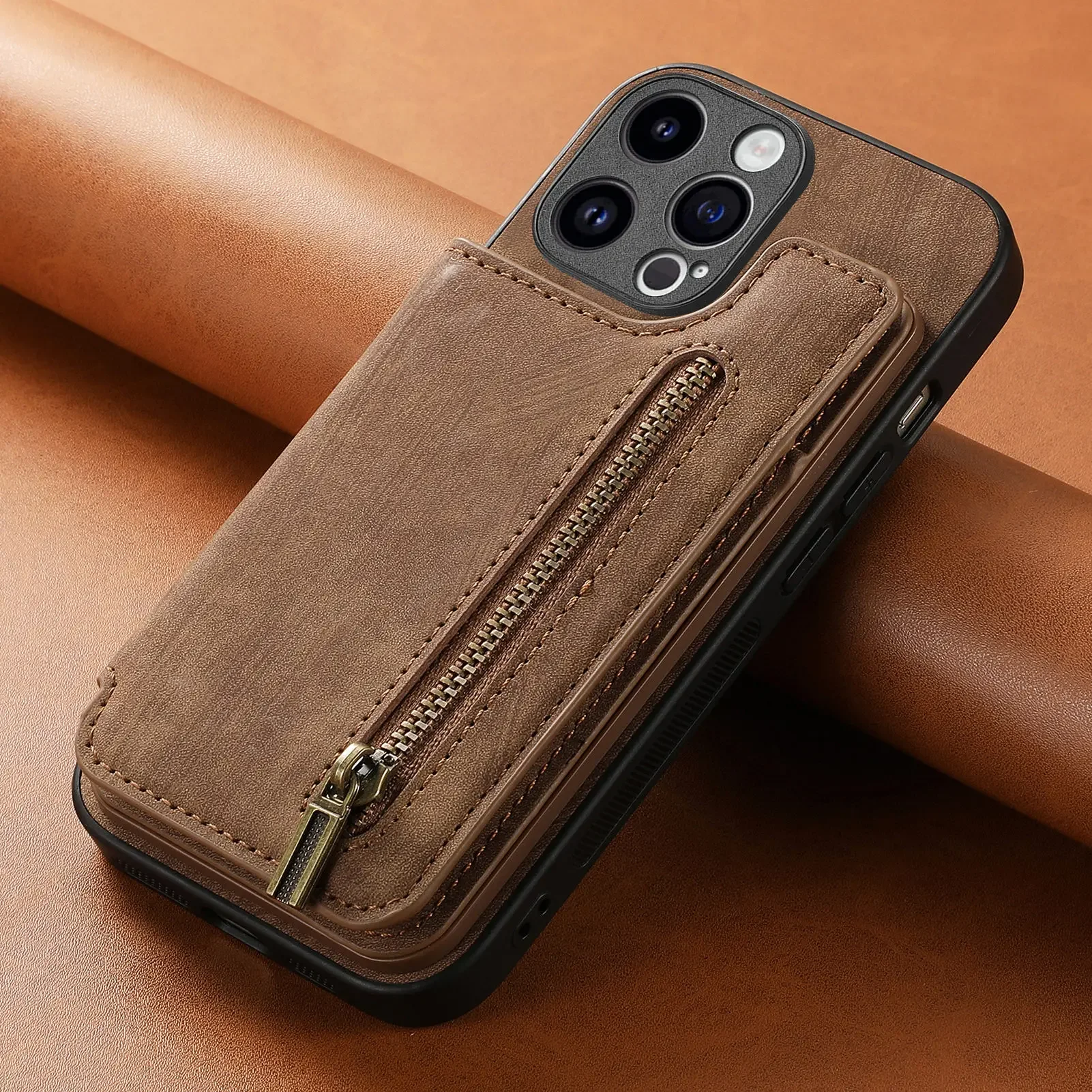 Zipper Wallet with Card Holder Phone Case for IPhone 15 14 11 Pro Max 13 12 Mini X XR XS Max 8 7 Plus Leather Shockproof Cover