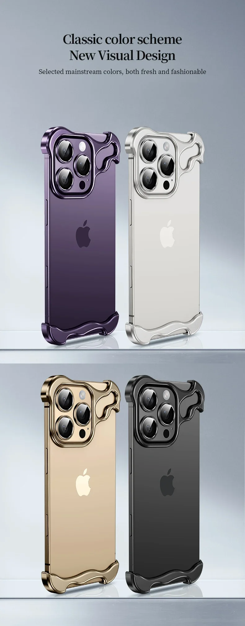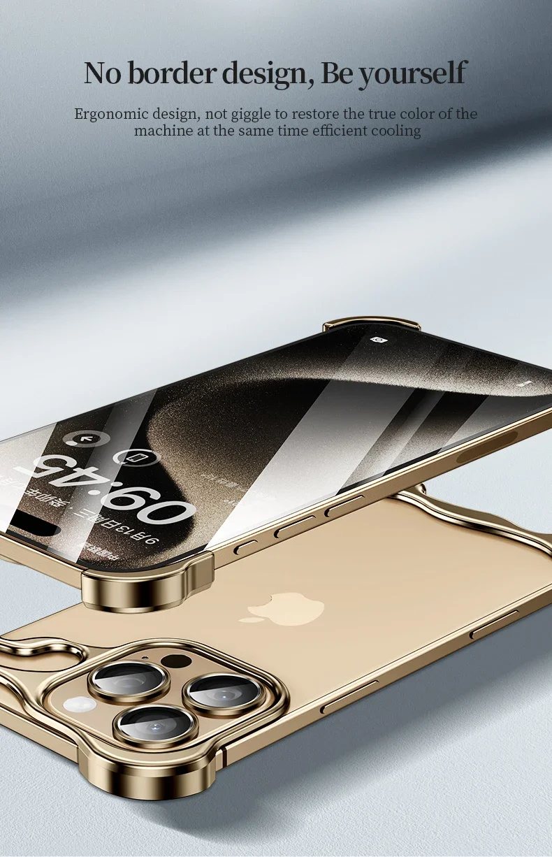 Aluminum Metal Rimless Phone Case for iPhone 16 15 14 Plus 13 12 Pro Max Lens Protective Film Hollow Logo Cooling Accessory Case