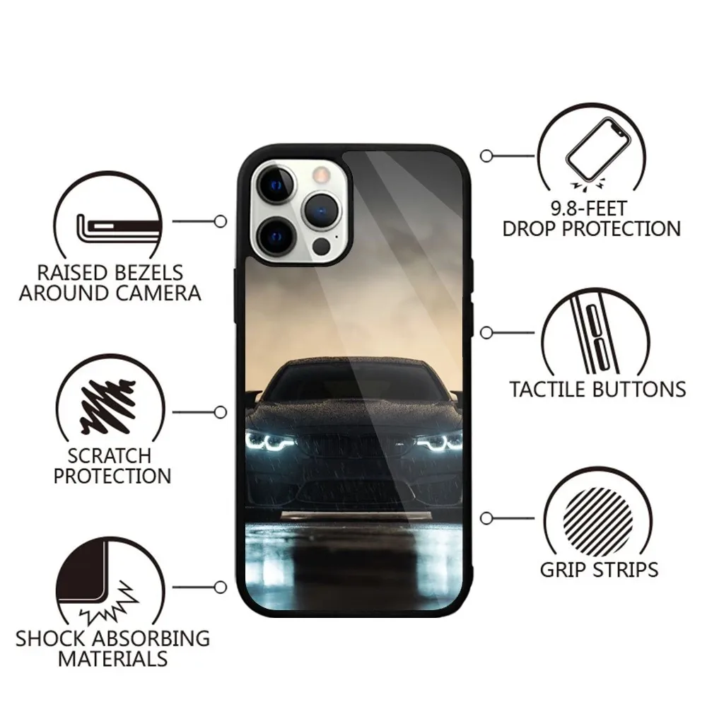 Color: Black, Material: Denim - Blue Red Car for B-BMW Phone Case Strong Magnetic For IPhone 15,14,13,Pro,Max,Plus,11,12,Mini For Magsafe Wireless Charging