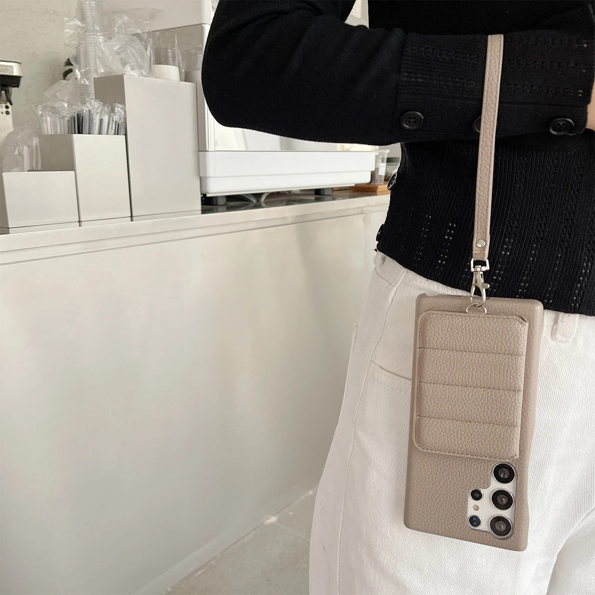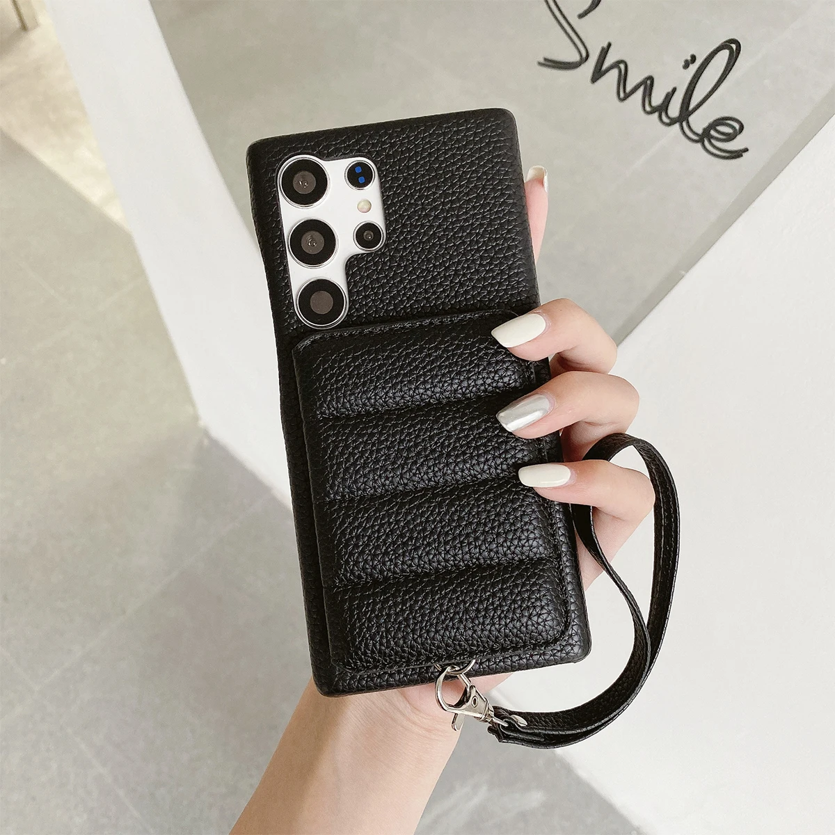 Color: black, Material: Denim - Luxury Lanyard Wallet Case For Samsung Galaxy S21 FE S22 S23 Plus Note 20 Ultra A52 A53 A54 5G Lichee Pattern Leather Cover