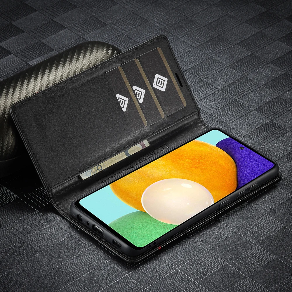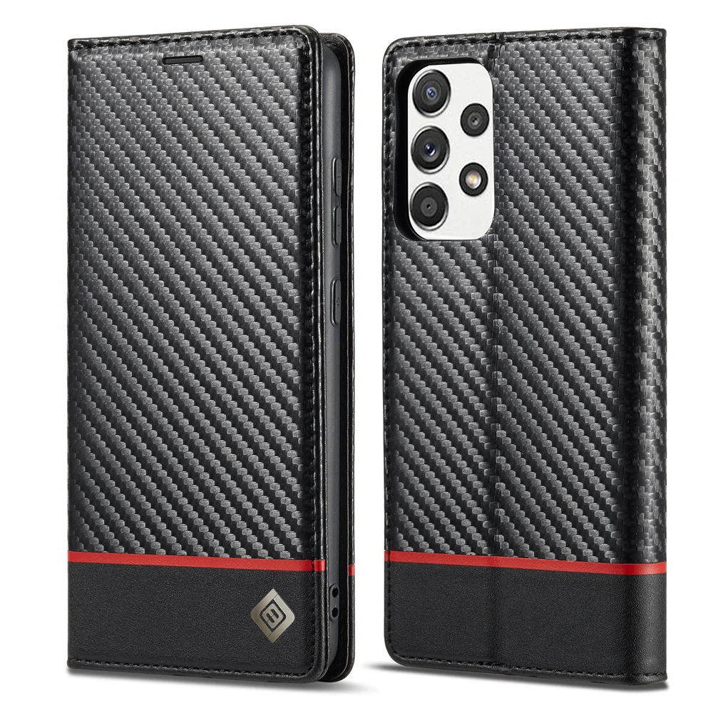 Color: Black, Material: leather - Carbon Fiber Leather Case for Samsung A14 A24 A34 A54 5G A13 A23 A33 A53 Galaxy A52 A72 A32 A12 A04S A02S Wallet Card Slot Cover