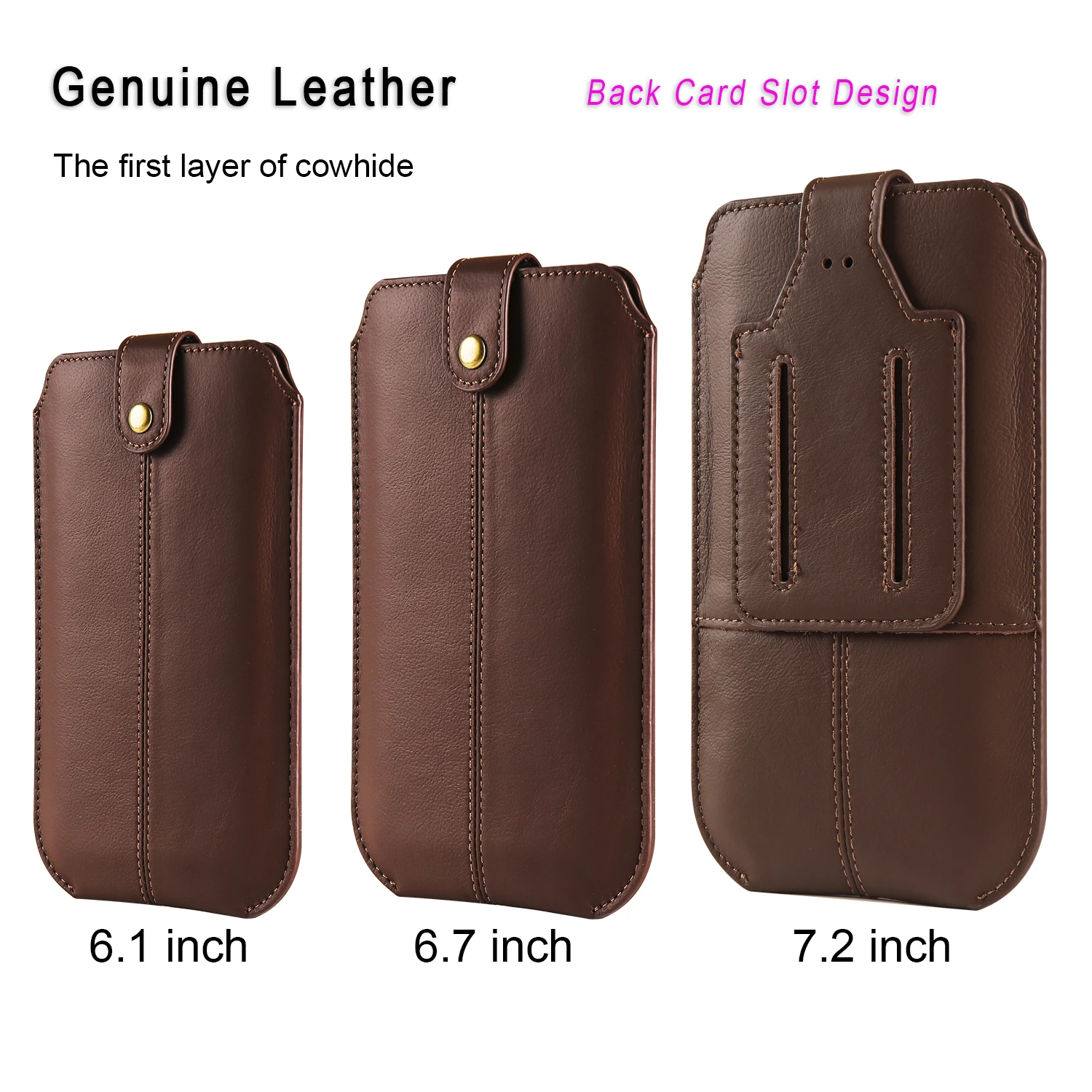 Luxury Genuine Leather Mobile Phone Pouch, Back Card Slot Belt Clip Case Men Waist Bag