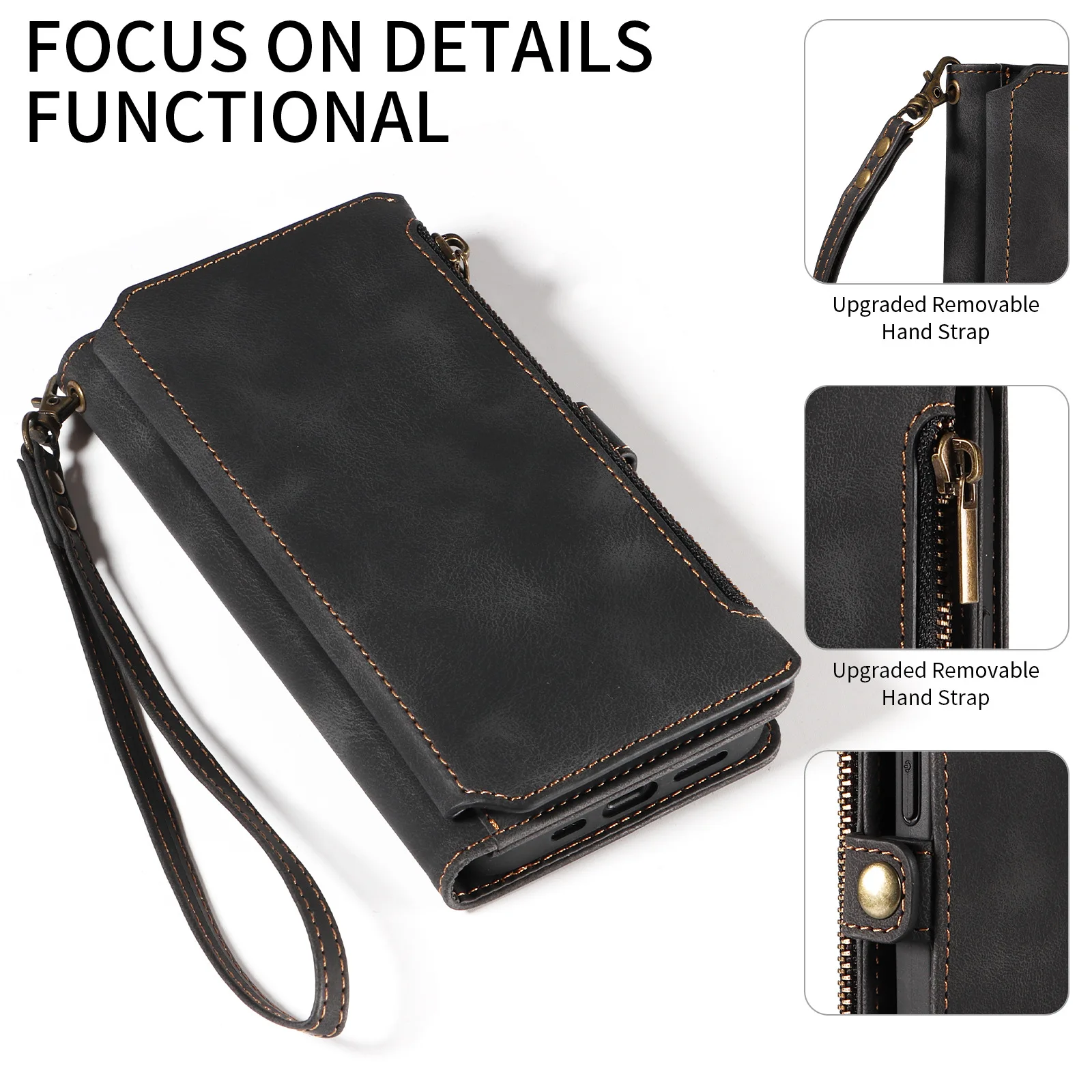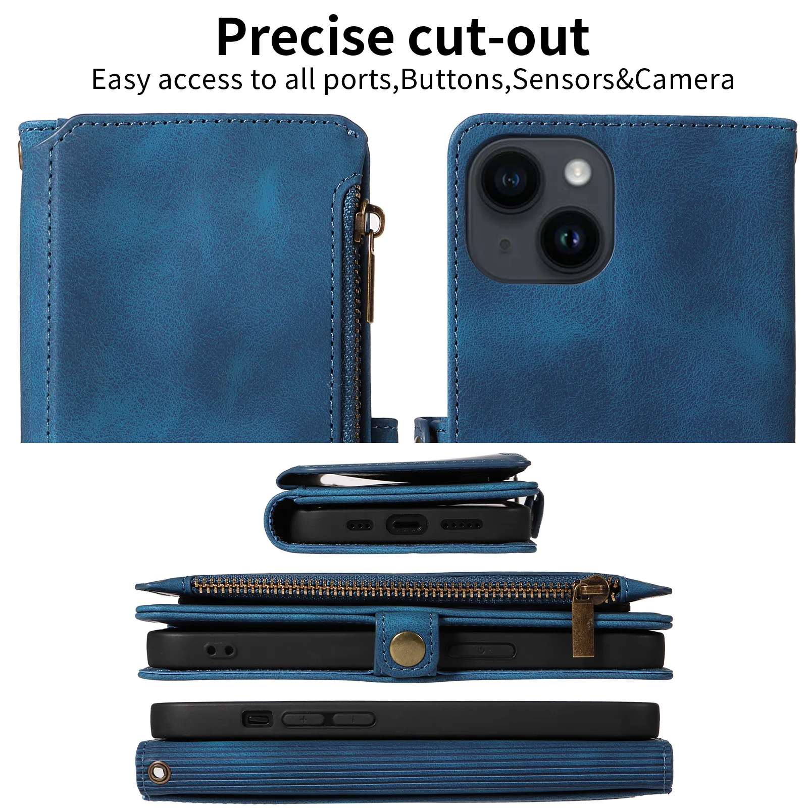 Feature 1: Zipper Wallet / flip case with 9 card slots + 1 cash slot+Zipper Pocket