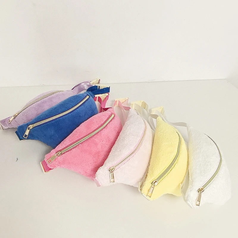 Color: Black - Plush Colorful Fanny Bag Outdoor Waist Pack Female Banana for Running Walking Fitness Gym Pouch Wedding Party Bridal Bag Gift