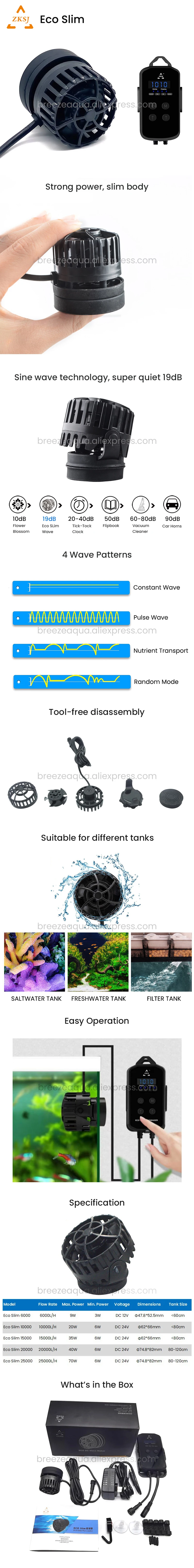 Color: Black, Power: 4W - ZKSJ Eco Slim 6000/10000/15000/20000/25000 DC Mini Saltwater Fish Tank Aquarium Wavemaker Pump with Controller