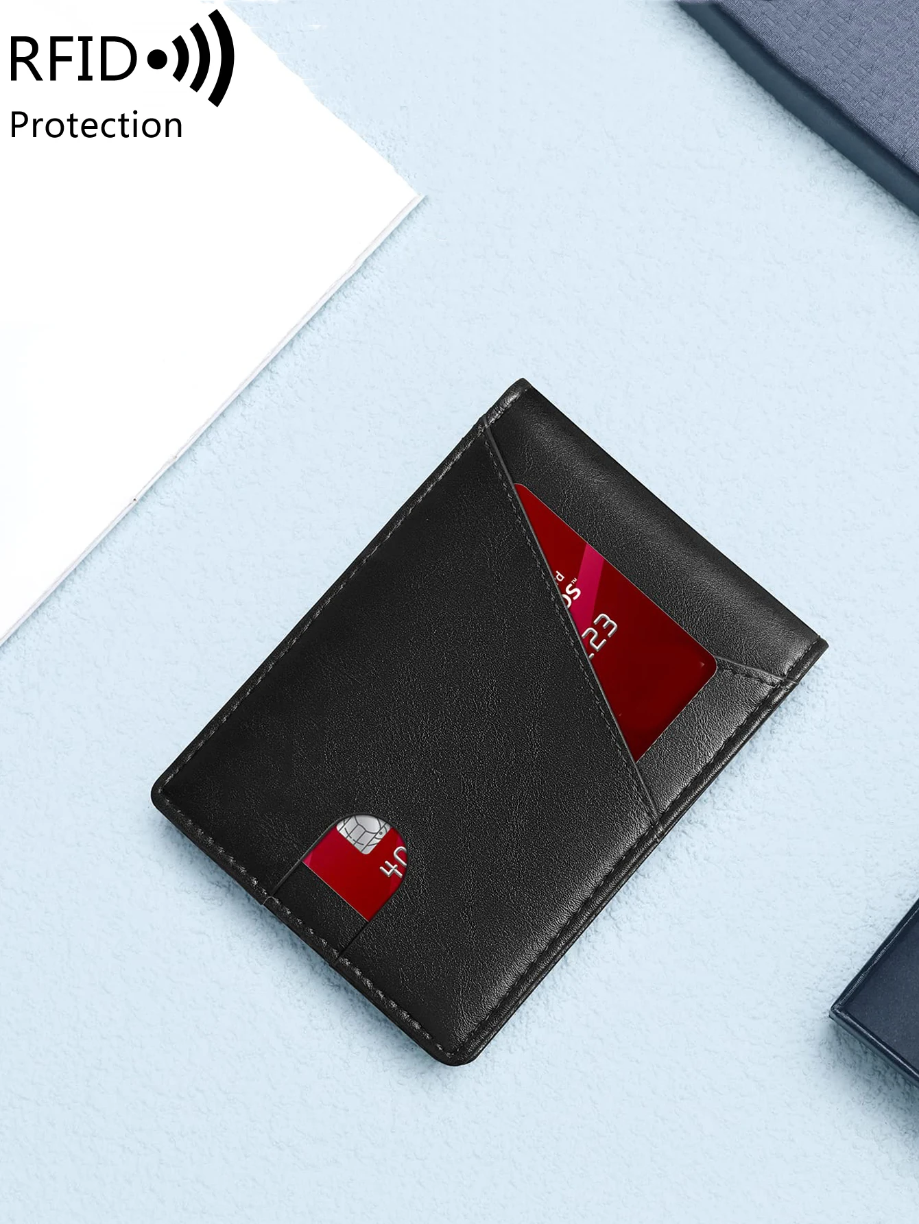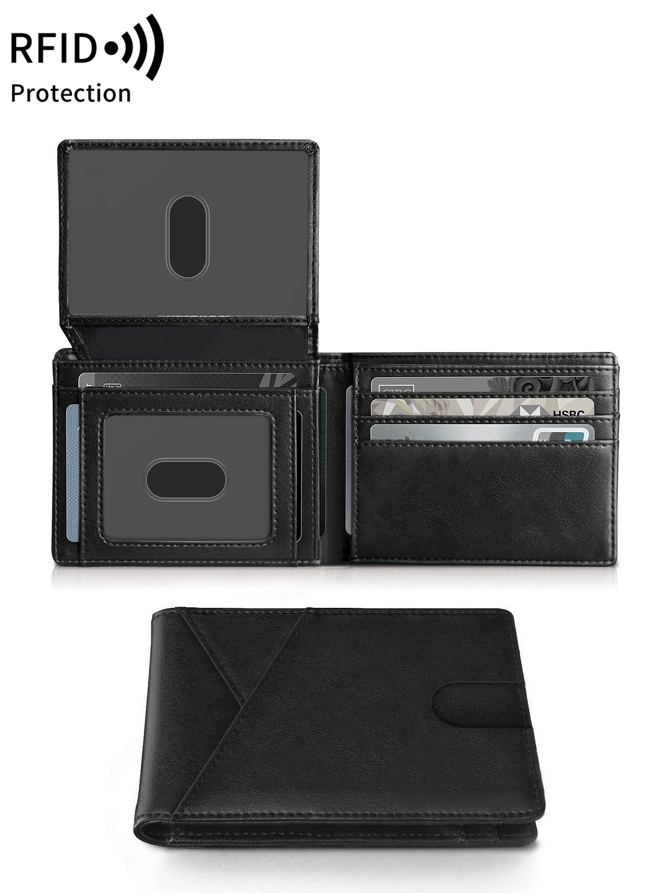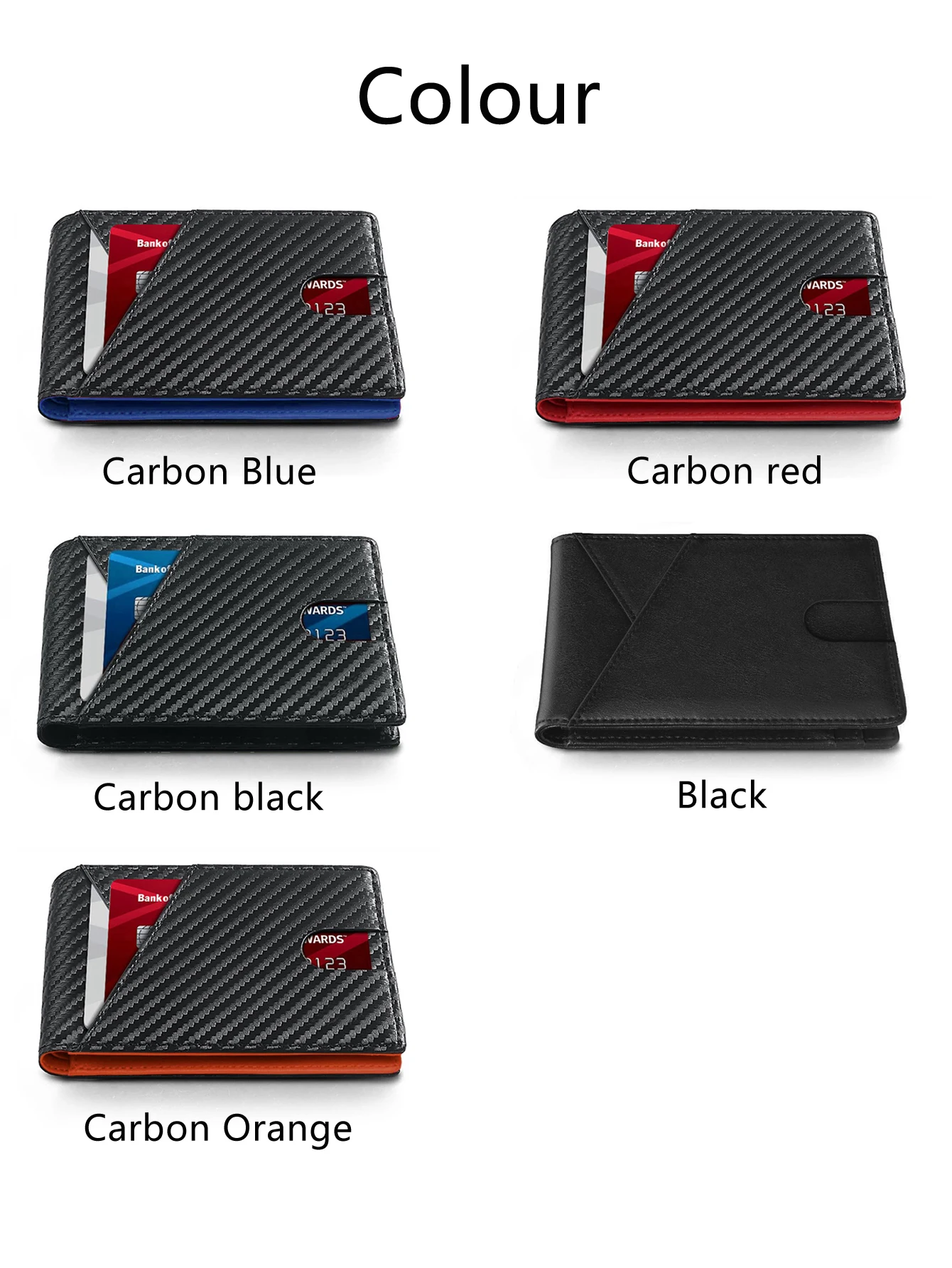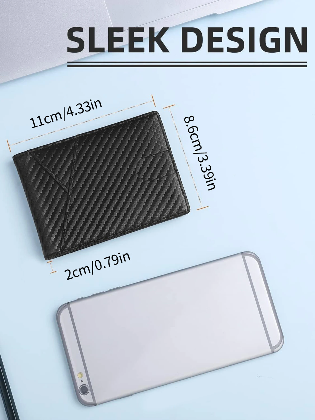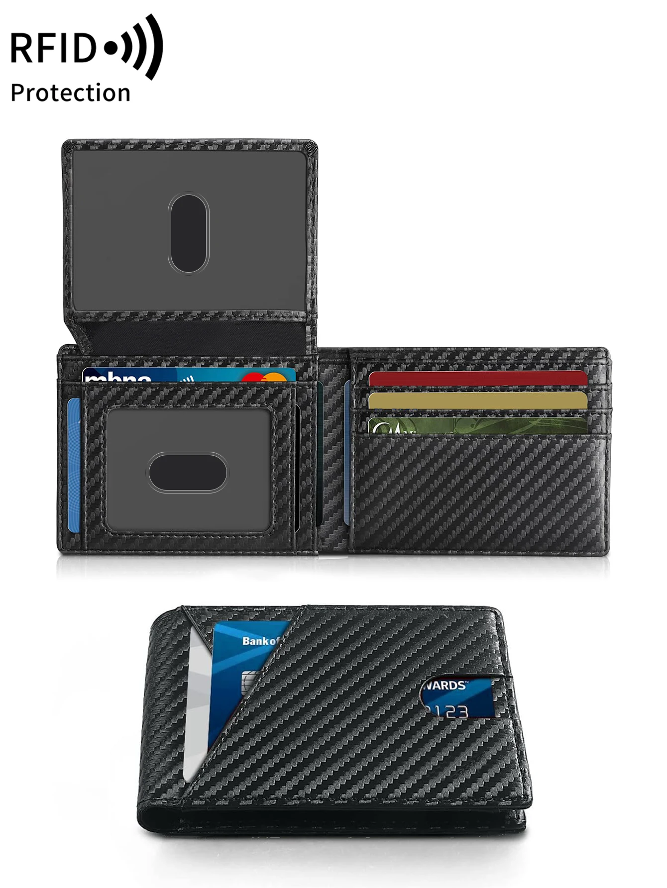 Color: black - RFID Carbon Fiber Ultra-thin Trifold Wallet Simple Front Pocket Design Wallet Multi-function Portable 8 Card Slots Men's Wallet