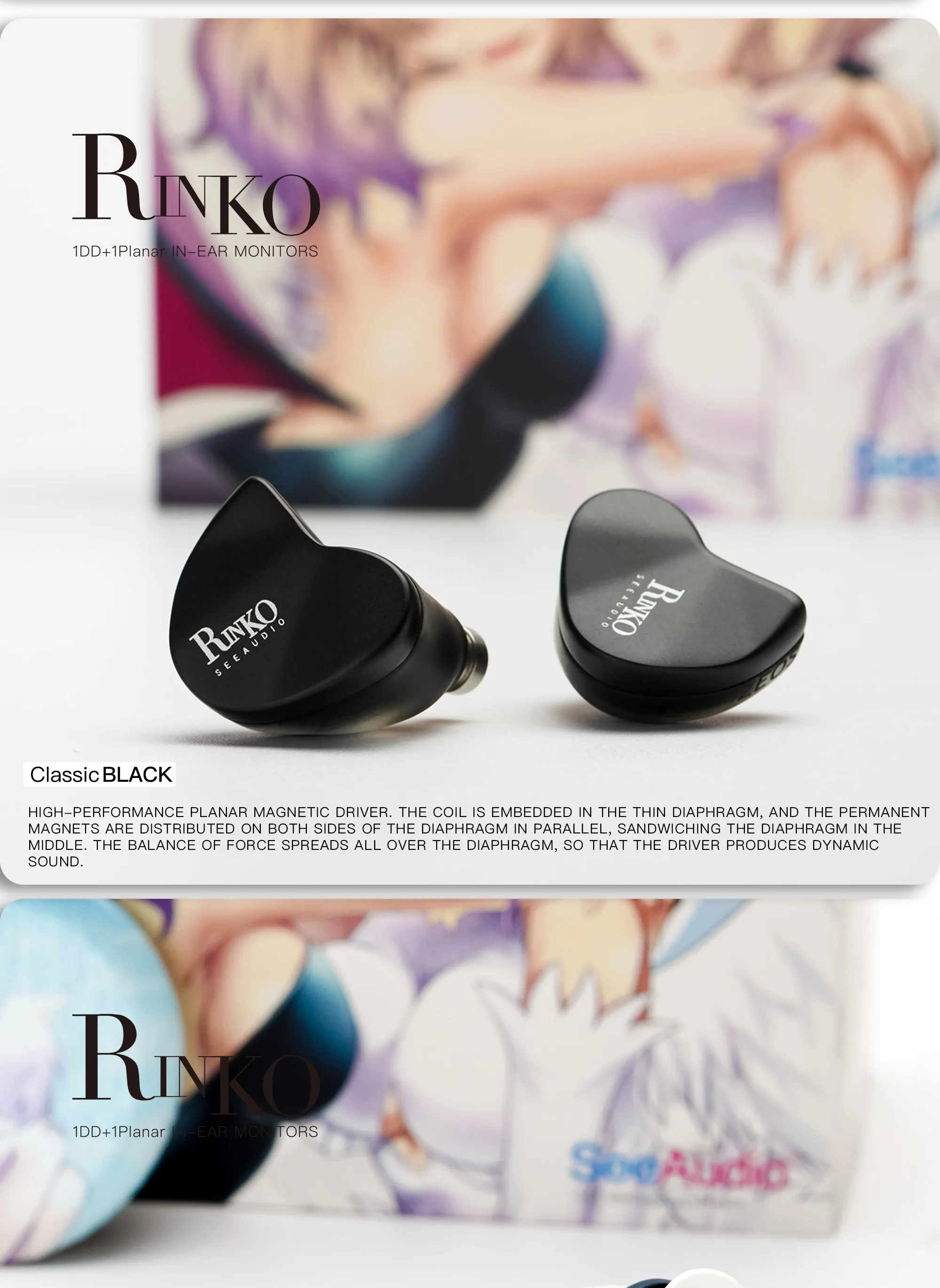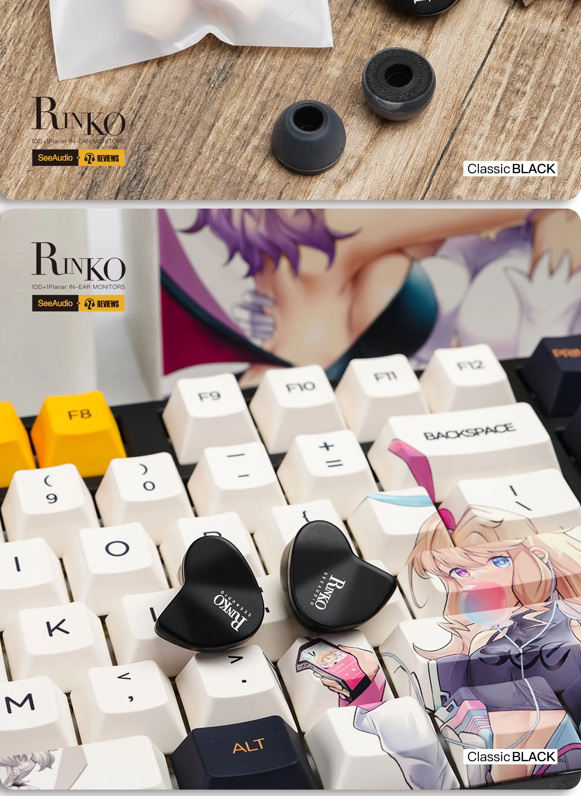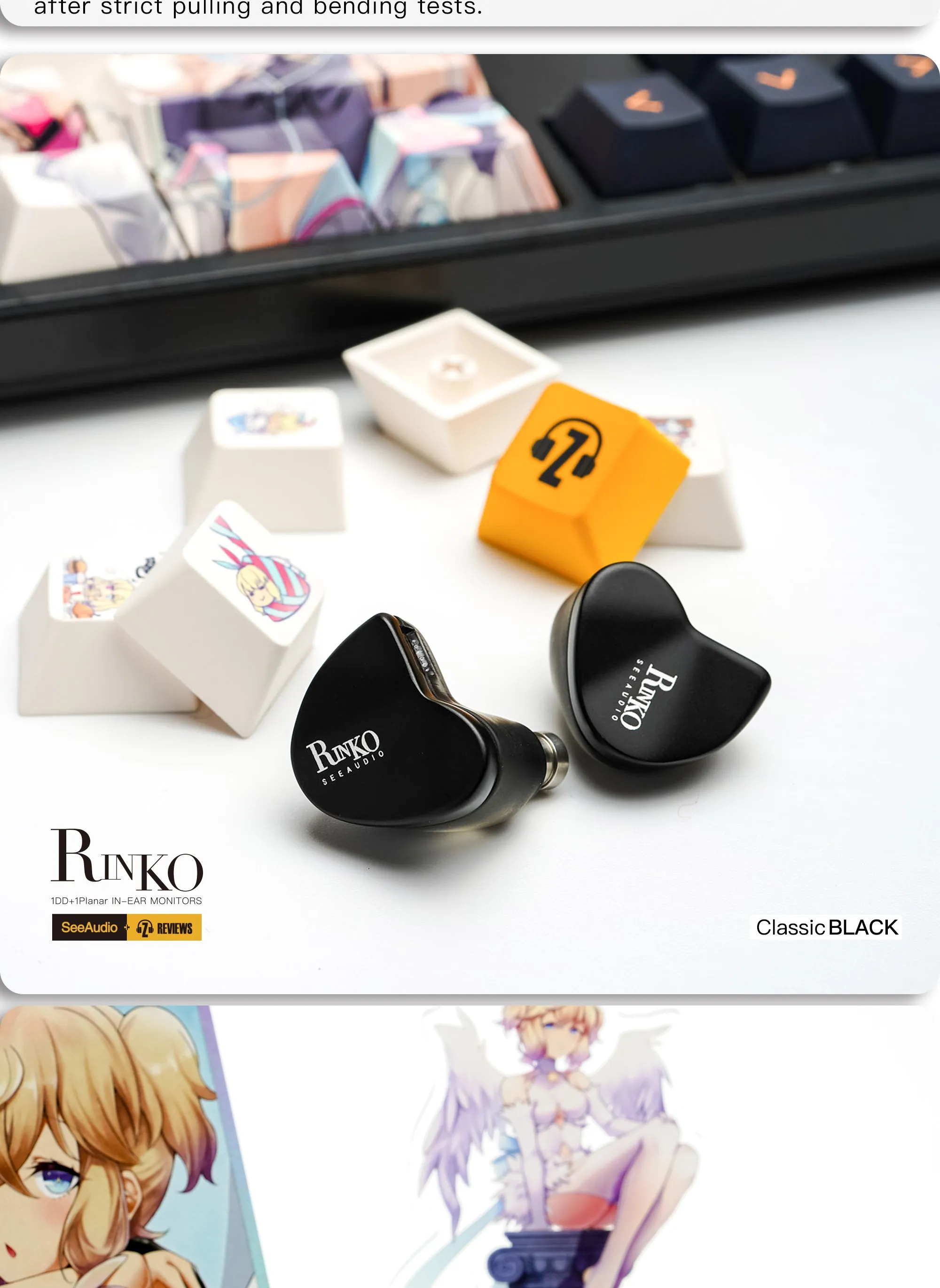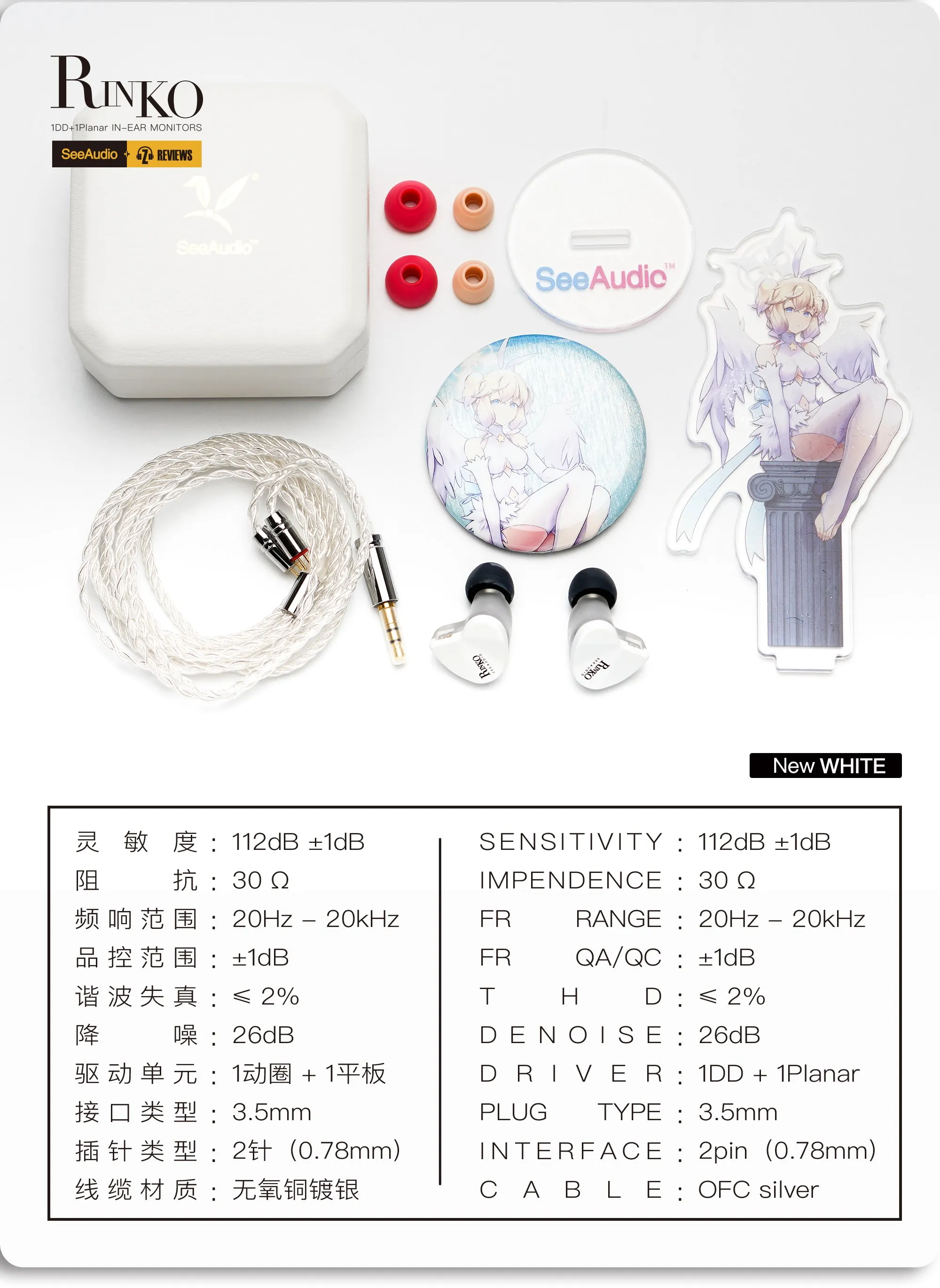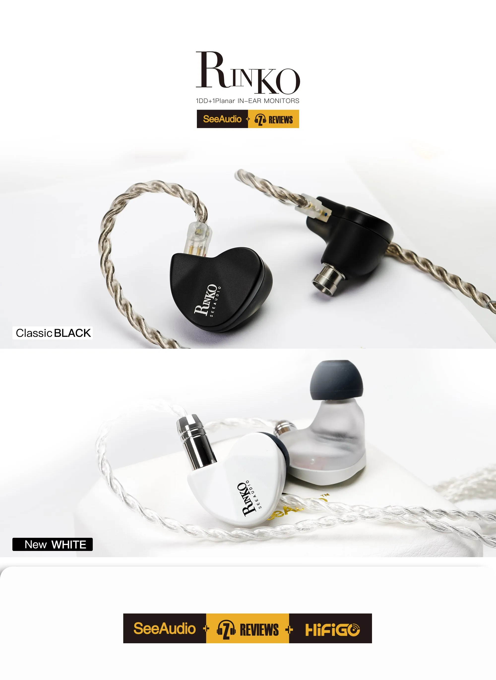 Color: Black - SeeAudio x Z Review White Rinko Hybrid Earphone 1DD+1Planar In-ear Monitors HiFi Wired Headphone J-POP Music Earbuds 2Pin 0.78