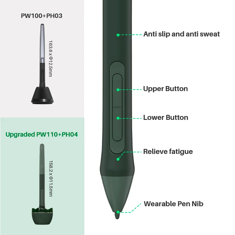 Package Content: Inspiroy 2 M tablet, pen PW110, pen holder, 10 pen nibs(in the pen holder, type-c cable, USB-C OTG adapter, quick start guide.