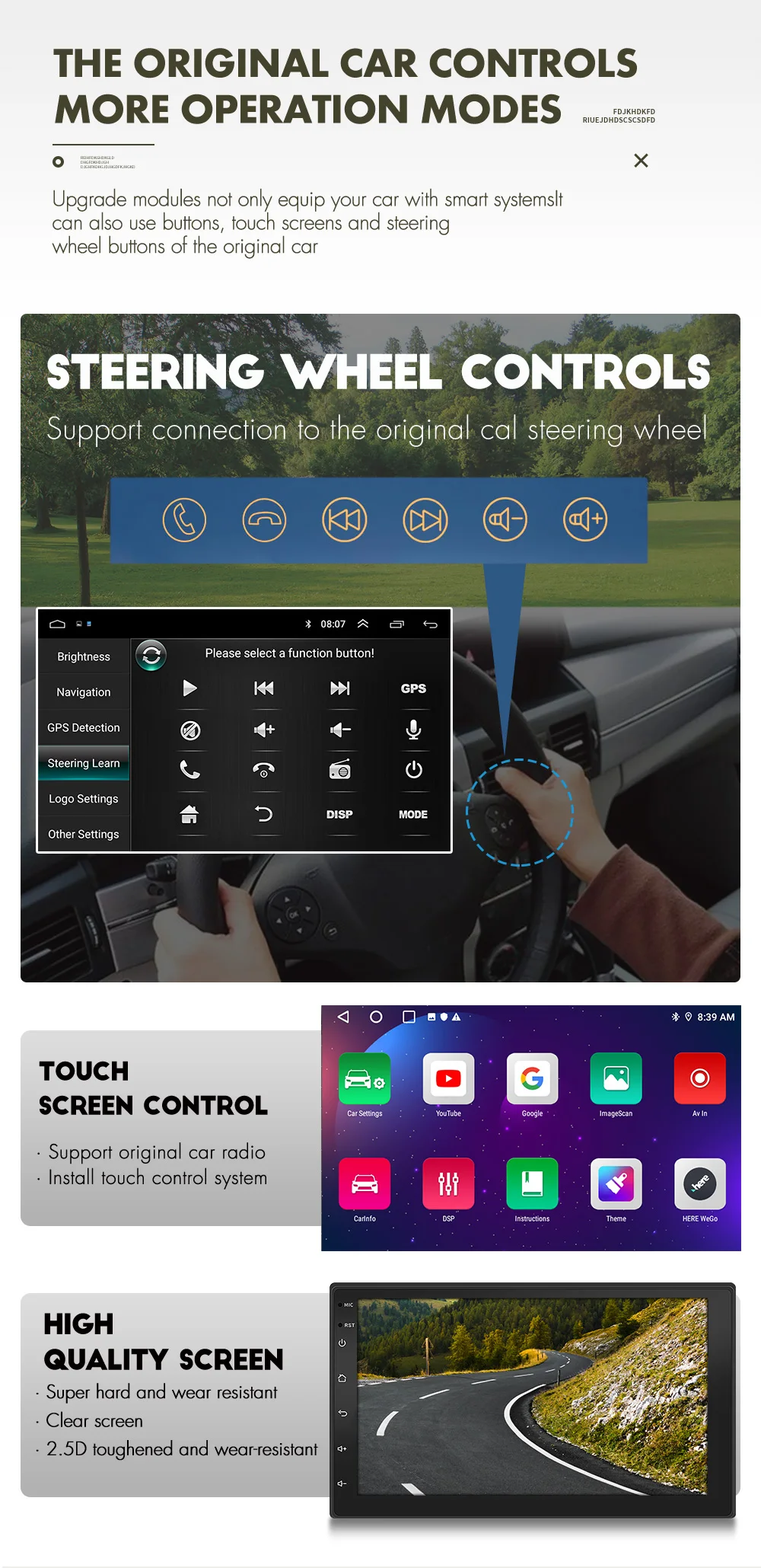 - STEERING WHEEL CONTROL, release your hands and use the original steering wheel buttons to control as you like.
