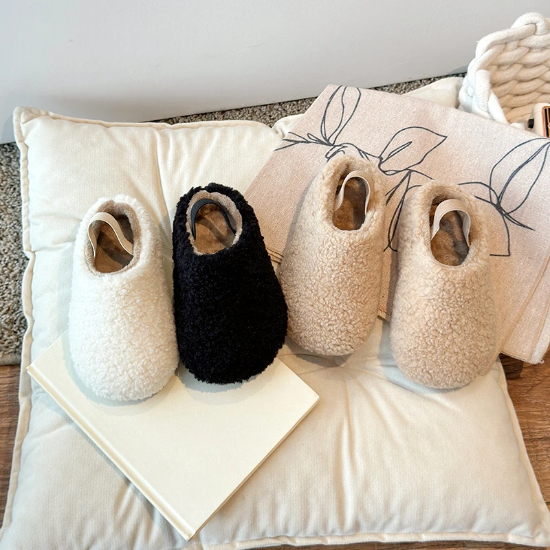 Soft ,warm and anti-slip , they'll look great wearing these furry mule Loafers .