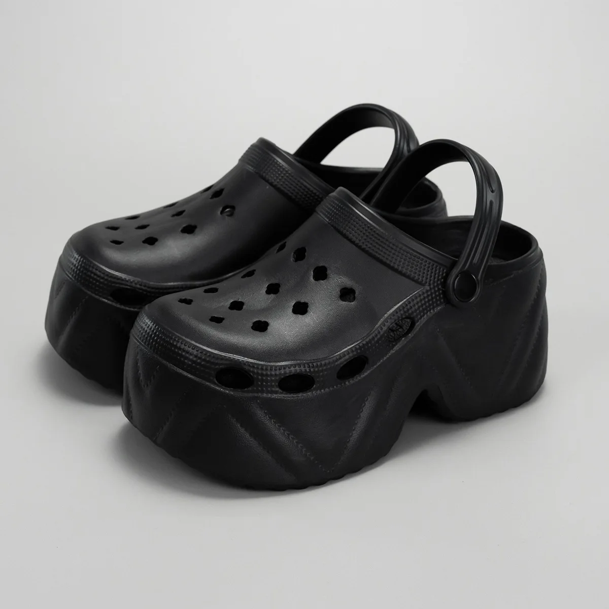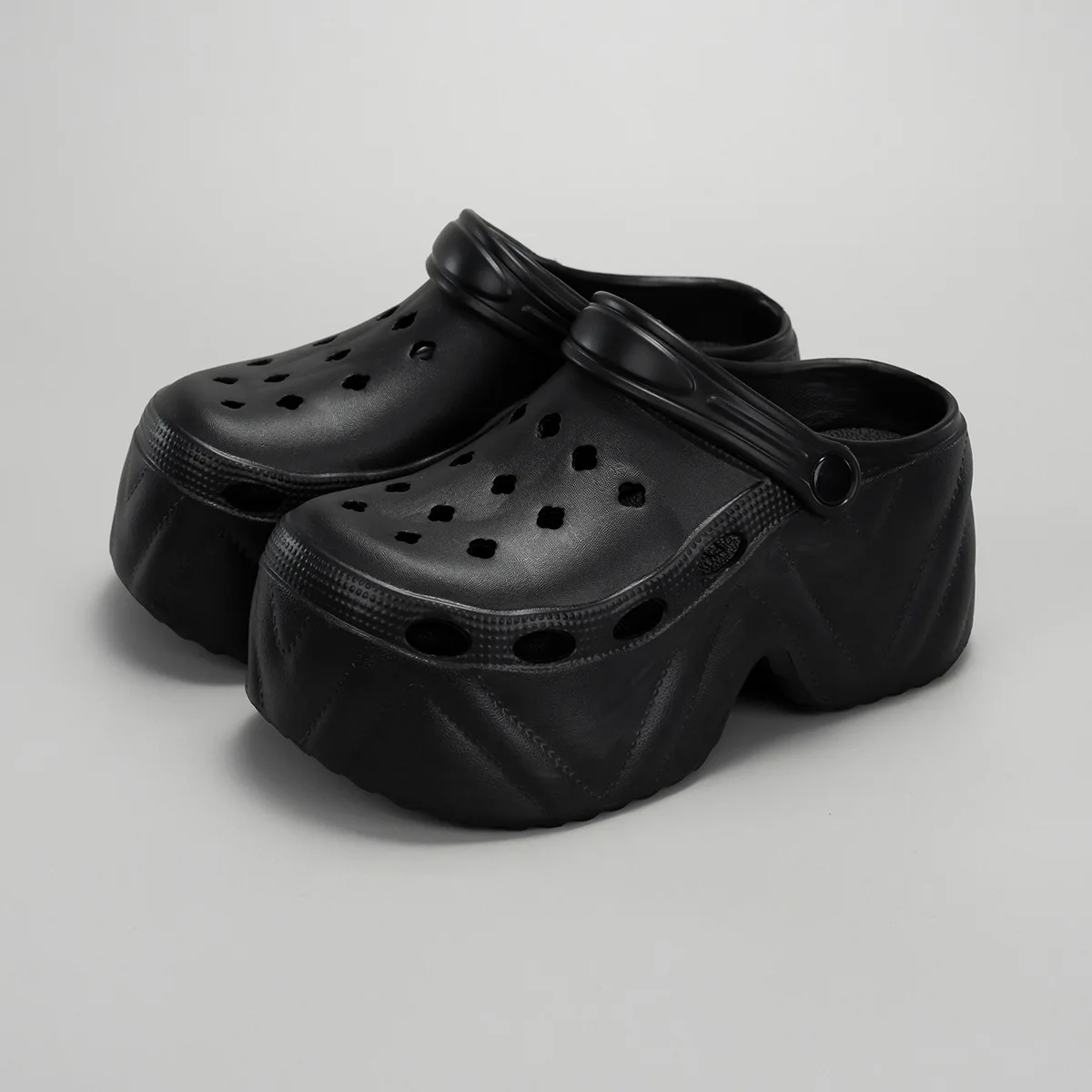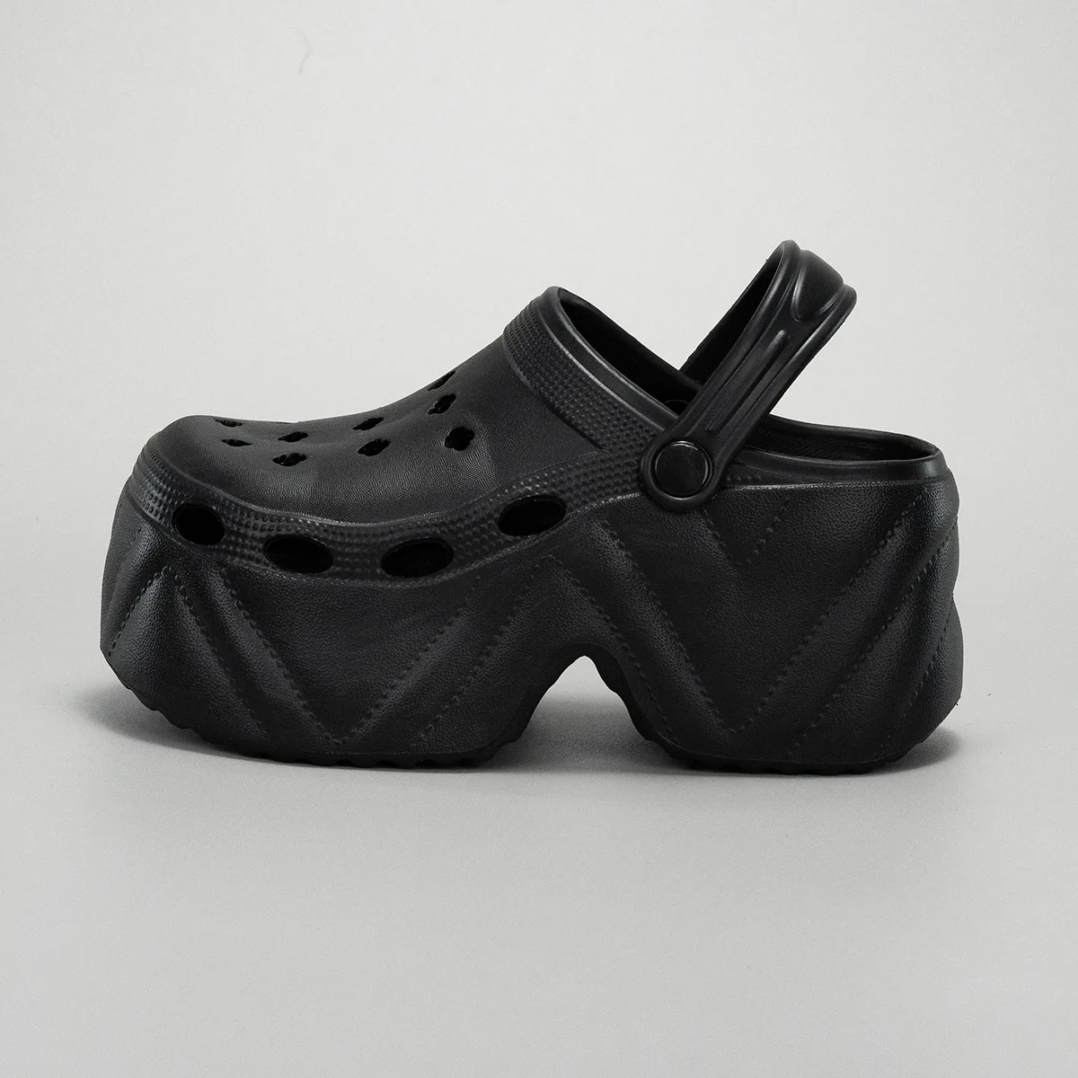 Color: black, Shoe Size: 3.5 - New summer outside wear thick bottom 9cm height increase EVA Baotou soft bottom non-slip women's breathable slippers cave shoes