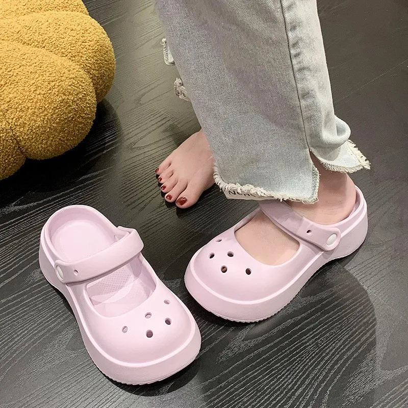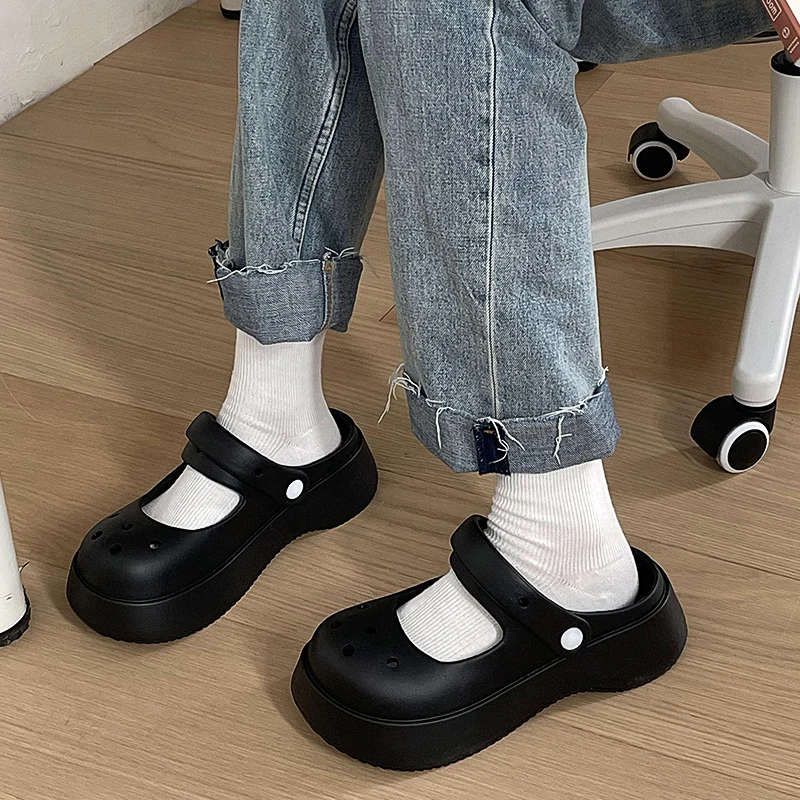 Color: black, Shoe Size: 35 - Summer Women Slippers Fashion Thick Bottom Hole Shoes EVA Slippers Anti Slip Baotou Slippers Outdoor Beach Sandals Slippers