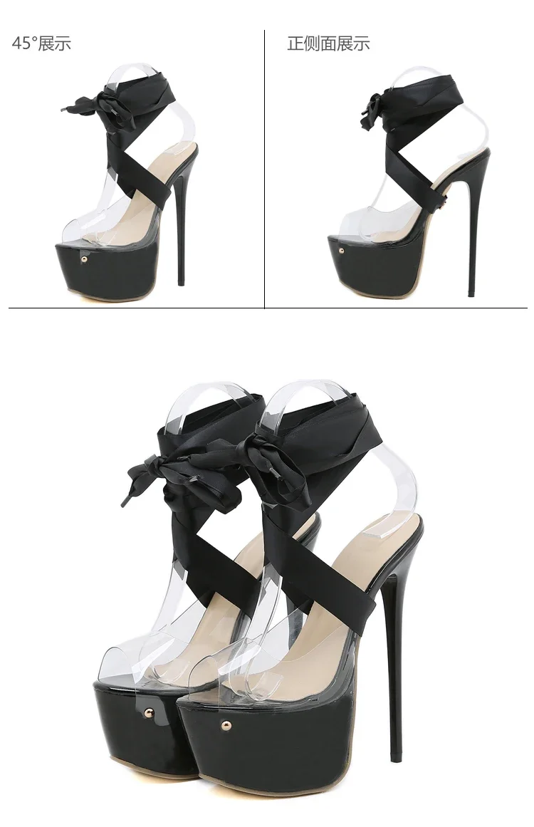 Color: black, Shoe Size: 36 - Black Sexy Thigh High Broad Band Strap Platform Sandals Women Transparent Peep Toe Club/Party Stripper 16CM Stiletto Shoes