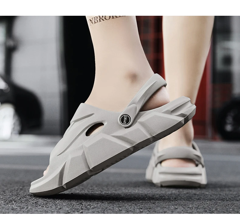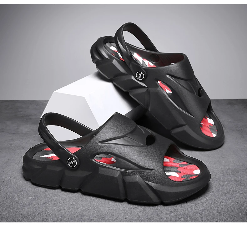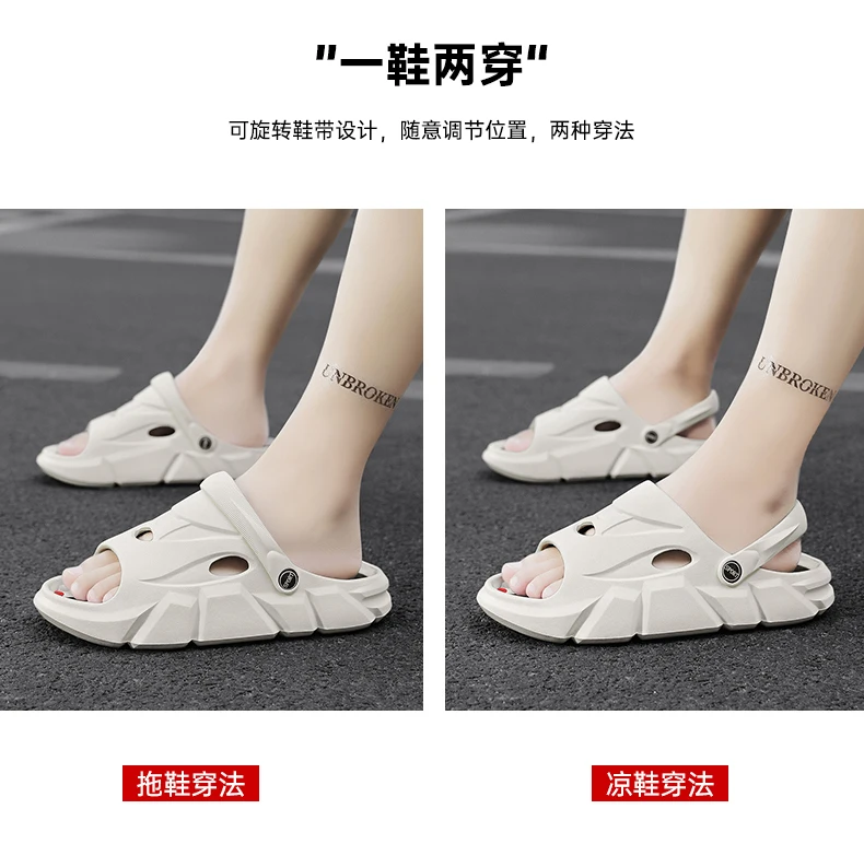 Color: Black, Shoe Size: 36 - Men's Beach Slippers Round Toe Lightweight Flat Bottom Waterproof Comfortable Trend Versatile Breathable Non-slip Large Size