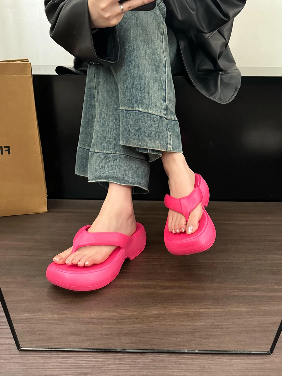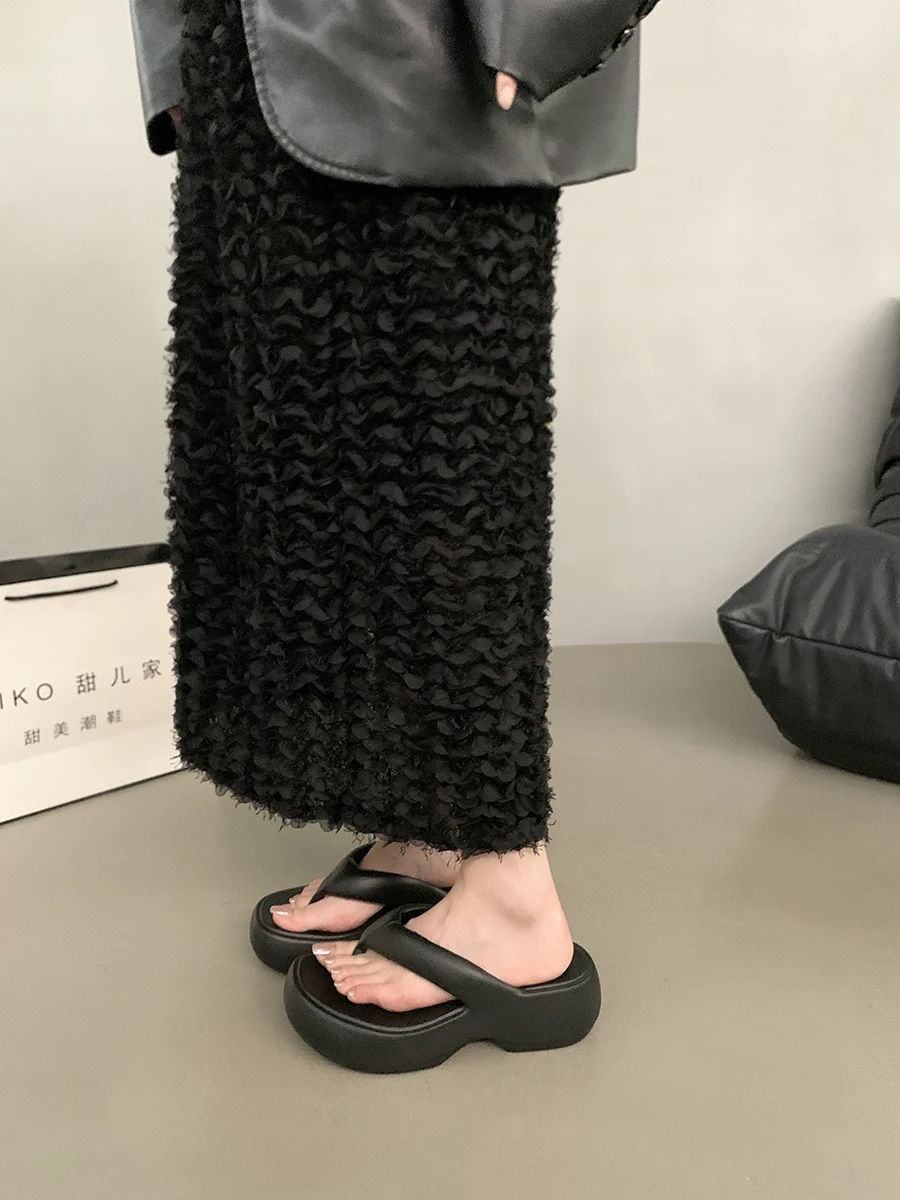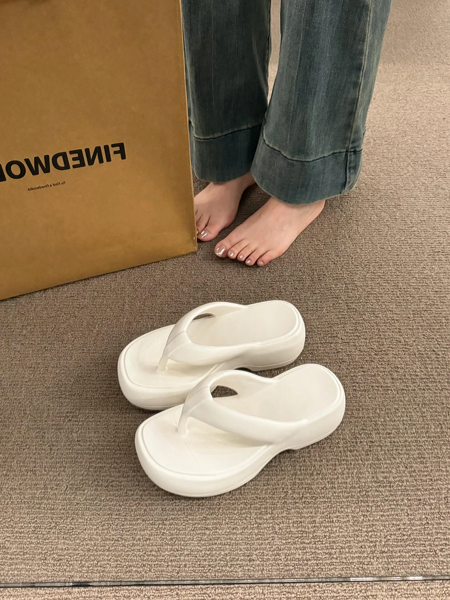 Casual Square Toe Women's Flip-flops Soft-soled Non-slip Heeld Sandals Unique Features Leisure Summer Popular Outdoor Slippers