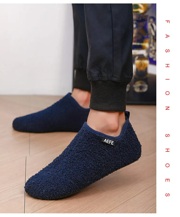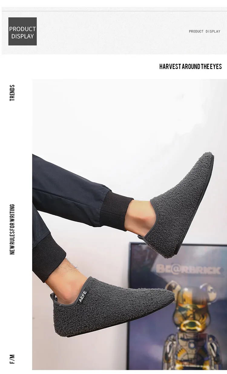 Color: black, Shoe Size: 39, Ships From: CHINA - Winter Fashion Men Slippers Plush Male Home Cotton Shoes Warm Anti-slip Men's Casual Shoes Flexible Solid Flats 39-47 Slip On