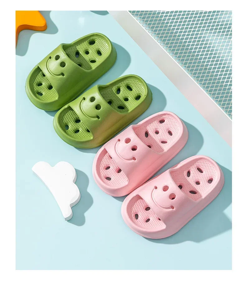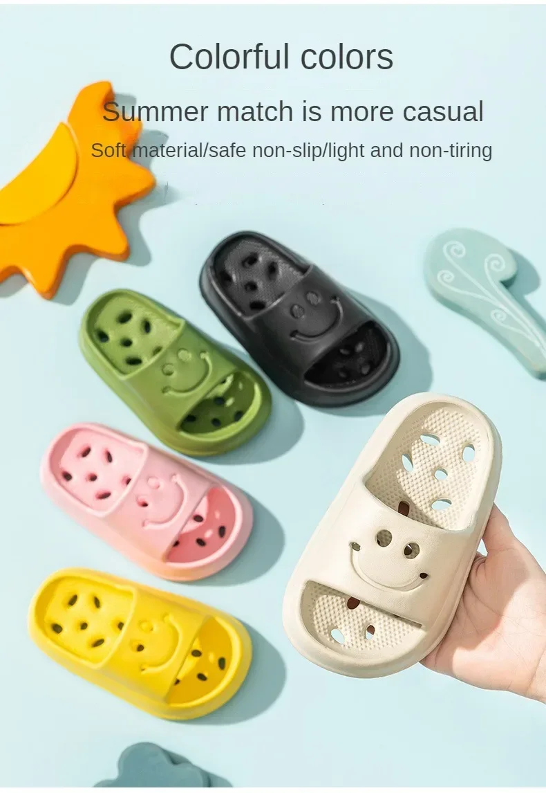 Children Slippers Boys EVA Smiling Face Bathroom Slippers Summer 2-14 Years Old Girl Anti Slip Hollow Leaking Junior Footwear
