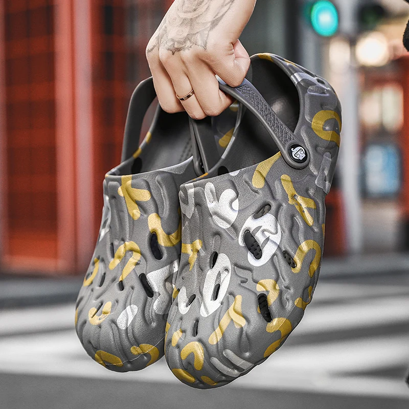 Color: black, Shoe Size: 42 - Men Summer Slippers Thick Sole Mens Clogs Sandals Hollow Breathable Flip Flops Sandals Shoes Fashion Beach Slippers
