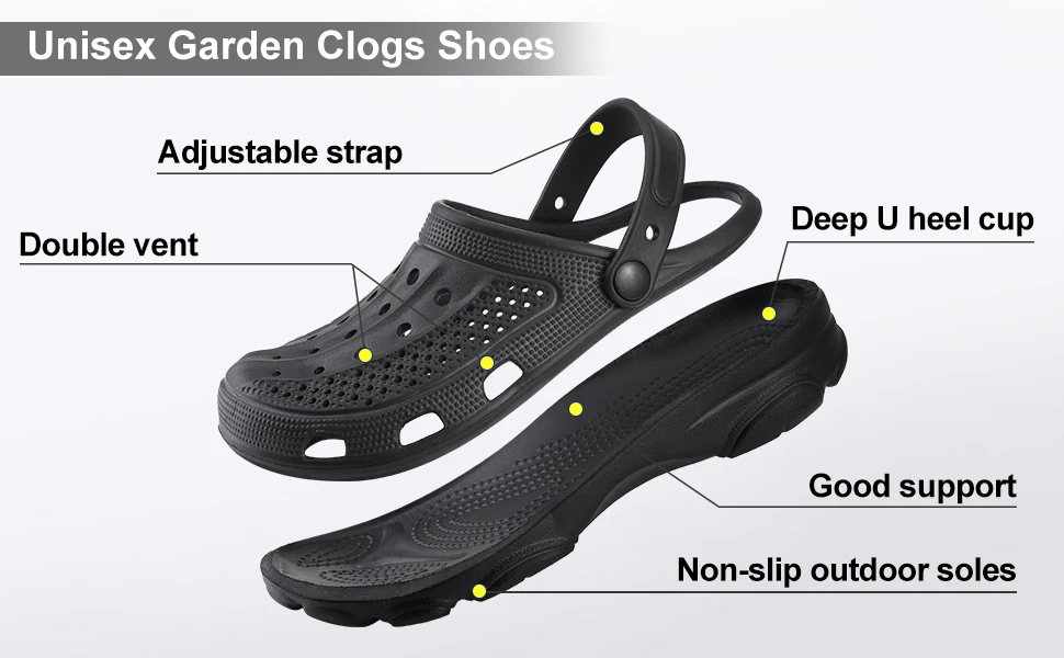 Color: black, Shoe Size: 44 - Smile Pop Casual Men Clogs Slippers Band Summer Slippers Outdoor Non-slip Beach Cozy Men Shoes Soft EVA Home Breathable Slippers