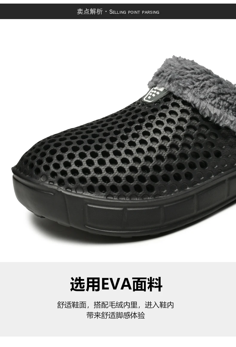 Color: black, Shoe Size: 45 - Couple Style Men's and Women's Cotton Slippers Winter Warm Plus Velvet Thickened Clogs Mule Shoes