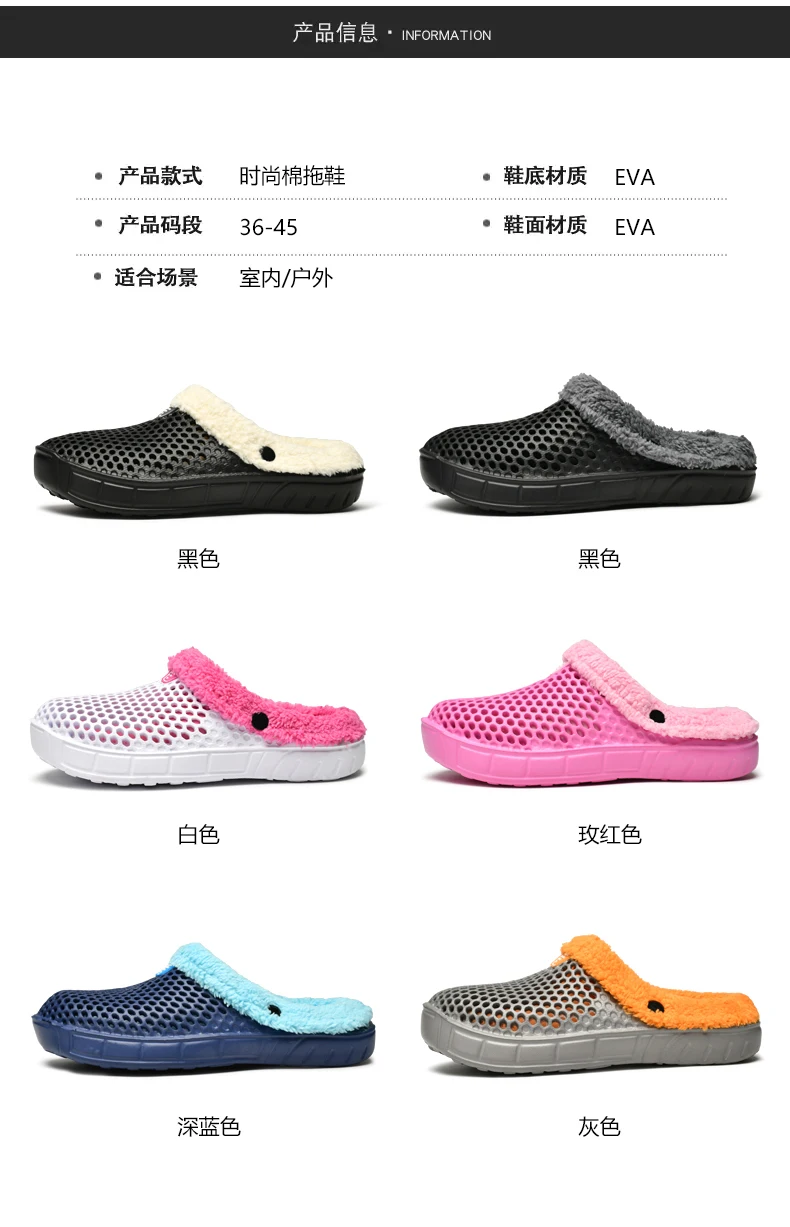 Color: black, Shoe Size: 46 - Couple Style Men's and Women's Cotton Slippers Winter Warm Plus Velvet Thickened Clogs Mule Shoes