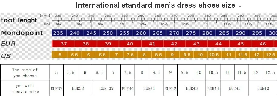 shoe size:EUR37--EUR46. Please choose the required size associate with your foot length, according to the international standard size sheet of male shoes