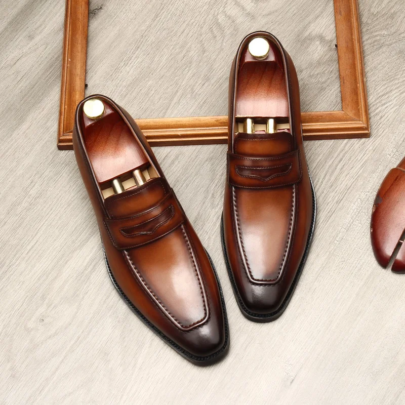 Color: black, Shoe Size: 6 - Large Size EUR37-46 Black / Brown Loafers Mens Business Dress Shoes Genuine Leather Prom Party Shoes