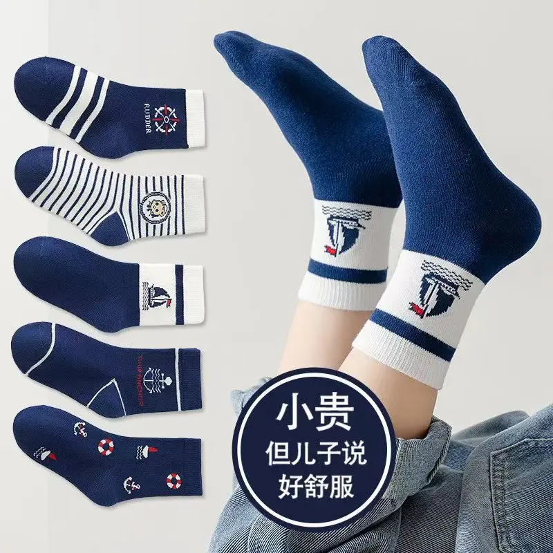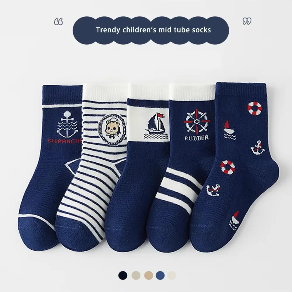 Color: black, Size: 10-12T - Autumn Children's Socks Little Big Boys Cotton Socks Baby Cartoon Pattern Medium Sock 5 Pairs/bag