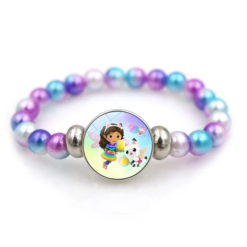 Color: black, Size: 12" - Gabby Dollhouse Bracelet Fashion Beaded Wristband Cartoon Anime Jewelry Accessories Kids Girls Boys Birthday Baby Shower Gift