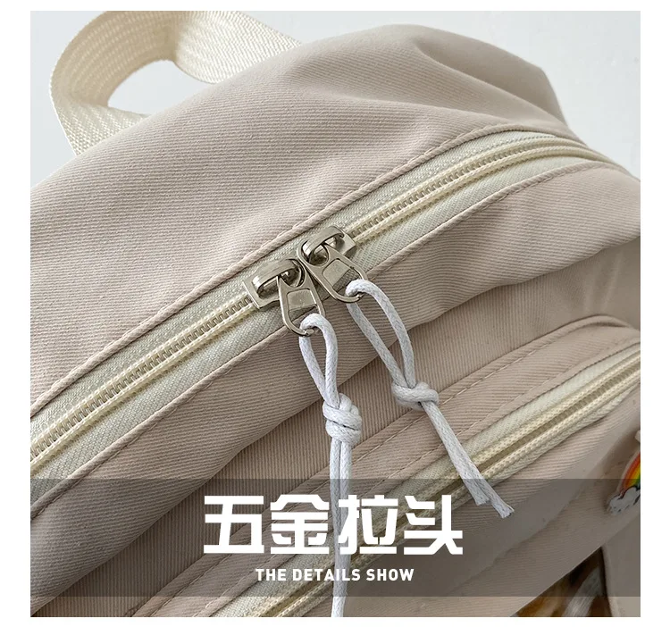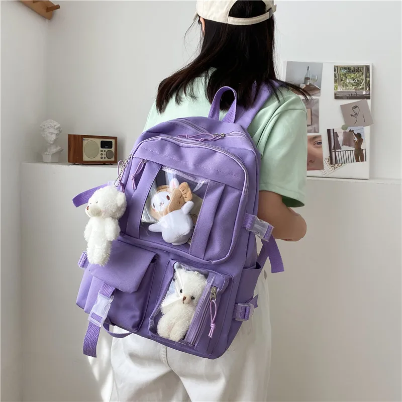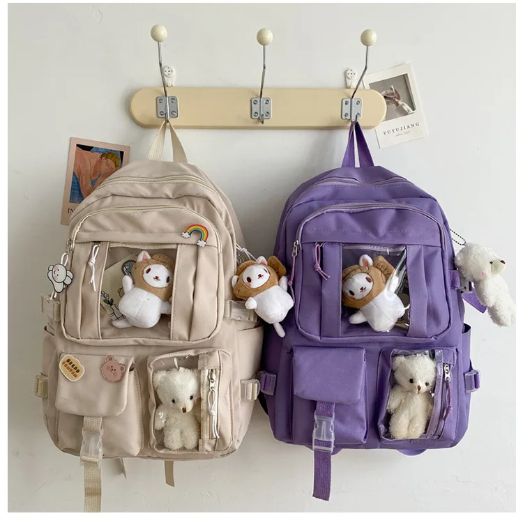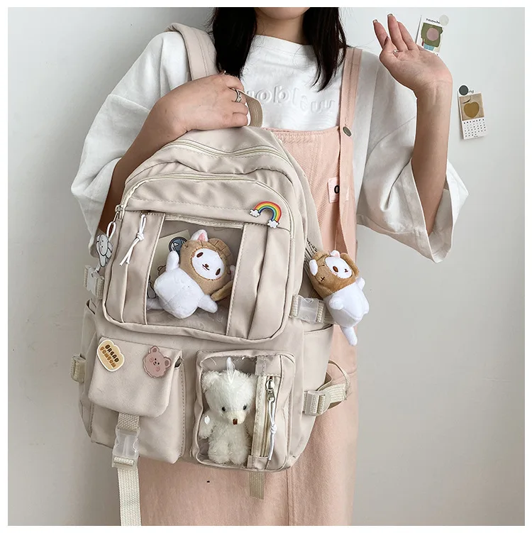 Color: black, Size: 16 inches - Large-capacity Cute Women Multi-Pocket Nylon Backpack Ins Junior High School Student School Bag Female Girl Backpack Laptop Book