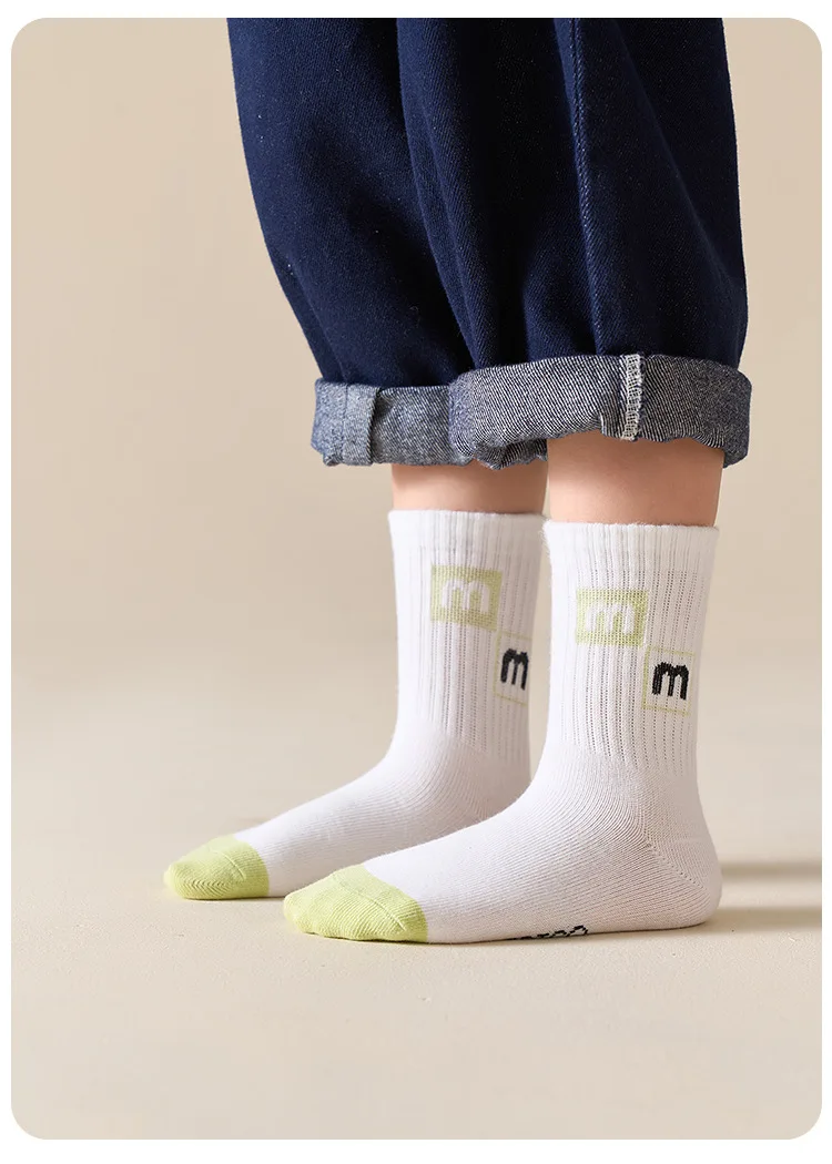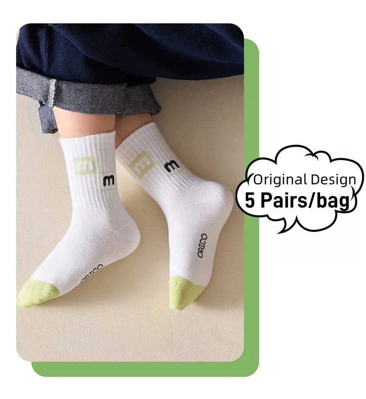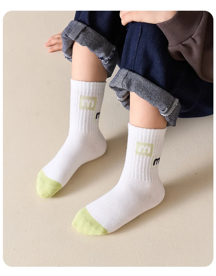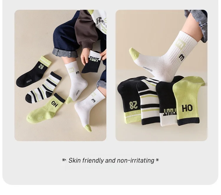 Color: black, Size: 2-3T - 1-14T Children's Socks Autumn Cotton Socks 5 pairs/bag Kids Spoty Socks Boys Baby Mid Calf Socks