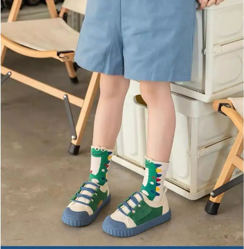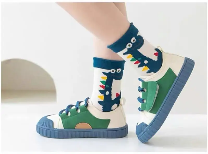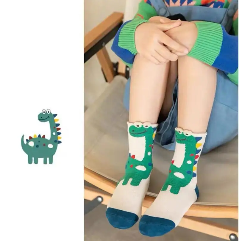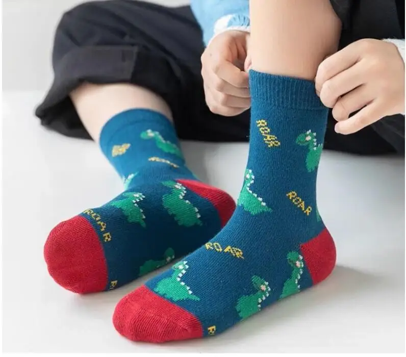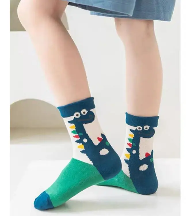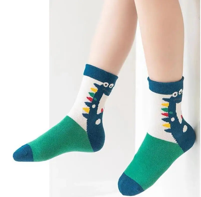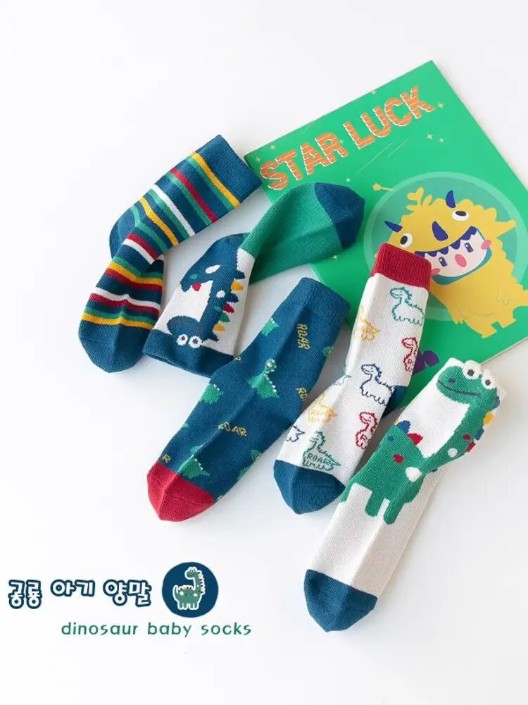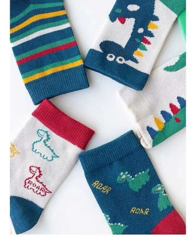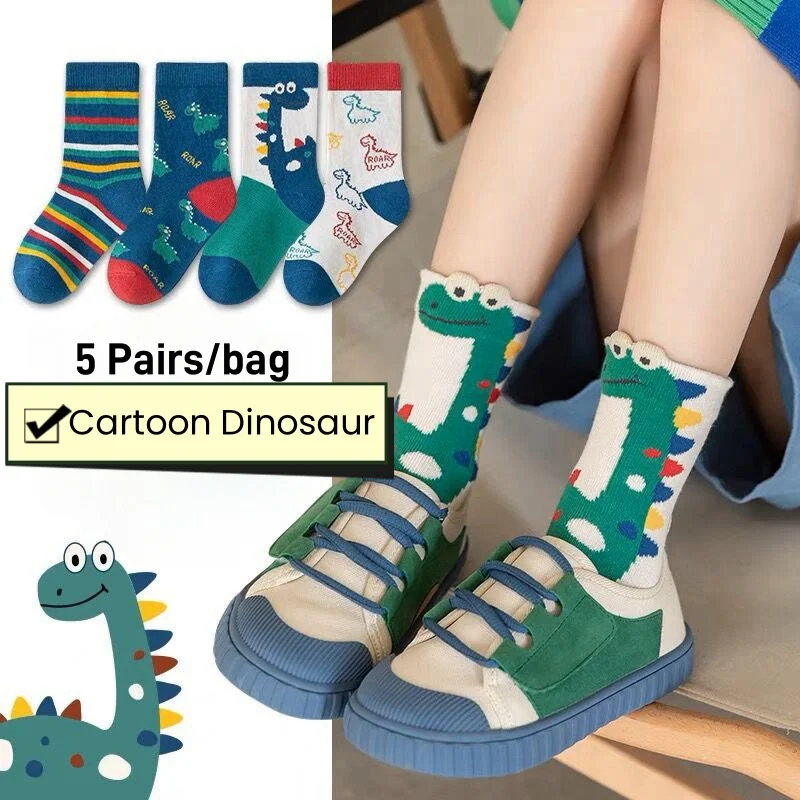 Color: black, Size: 2-3T - Children's Socks Autumn Boys Cartoon Dinosaur Socks 1-14T Kids Cotton Socks Student Sporty Socks 5 Pairs