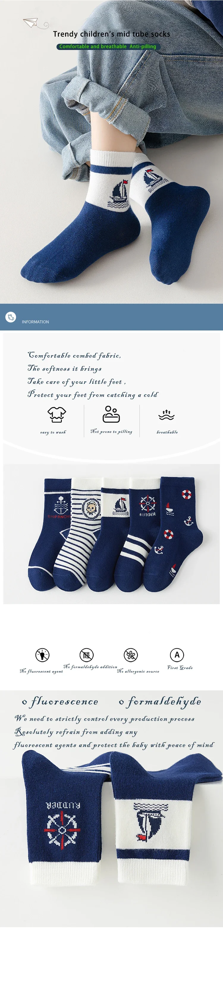 Color: black, Size: 4-6T - 1-14T Kids' Socks Spring Autumn Cotton Socks 5 Pairs/lot Soft Cotton Socks Calf Socks Little Big Boys Crew Sock