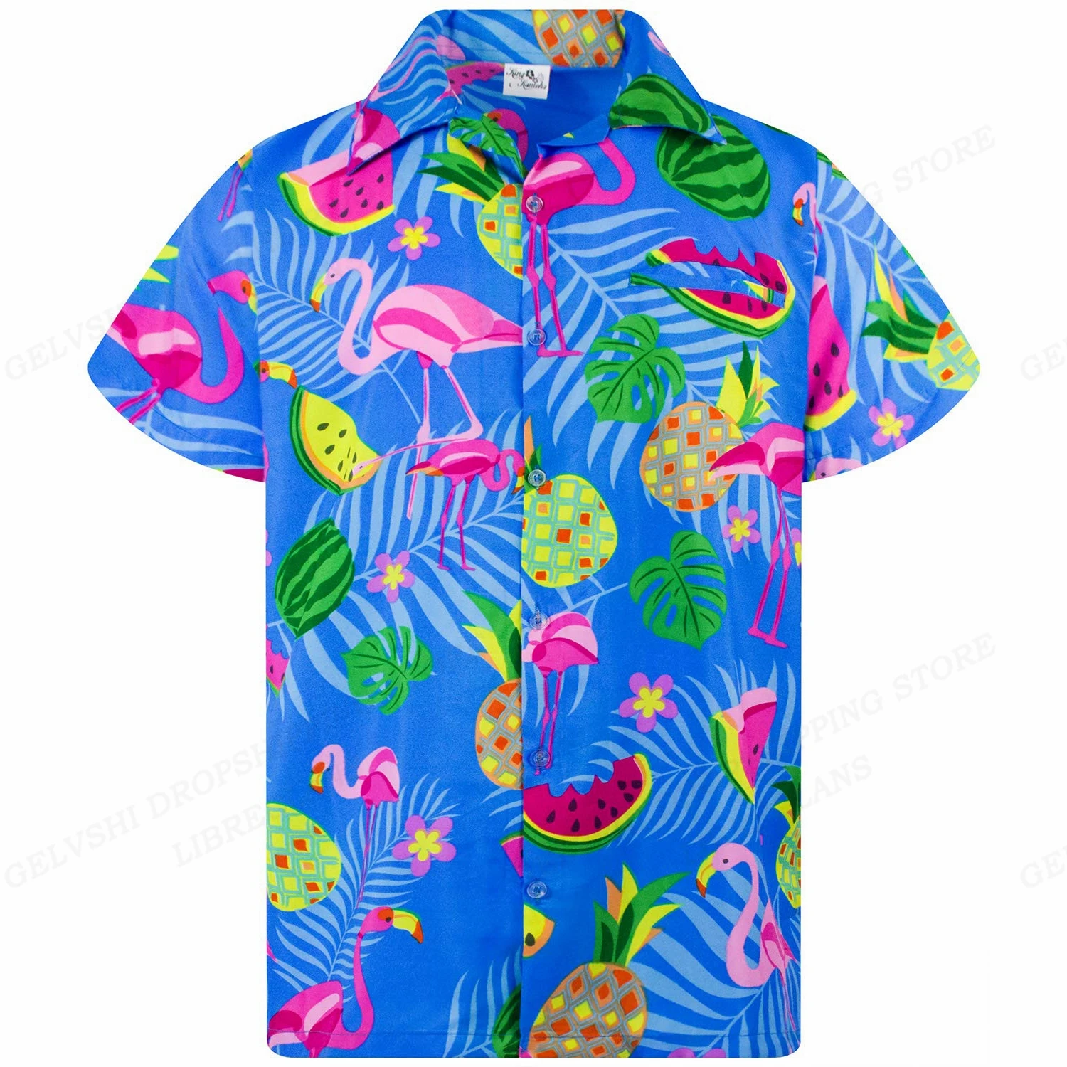 Color: black, Size: 4XL - Flamingo Hawaiian Shirts Beach Summer Men's Shirt Tropic Leaf 3D Print Shirts Men Women Fashion Blouse Short Sleeve Vocation