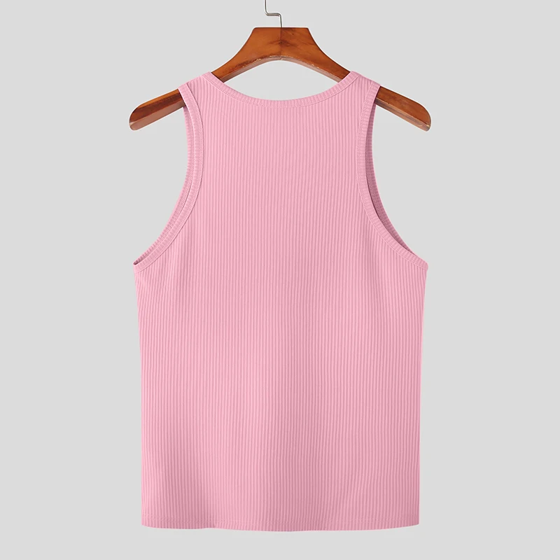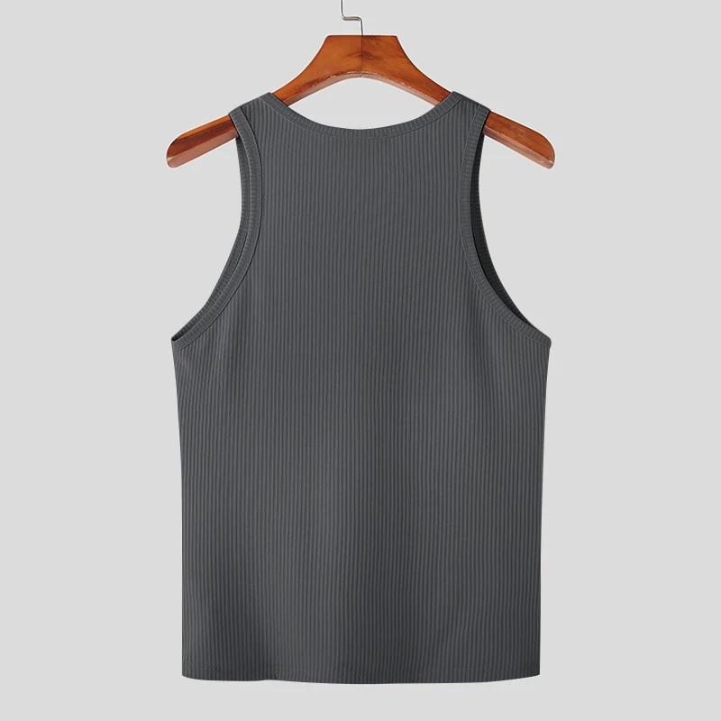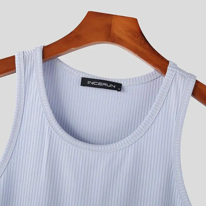 Color: black, Size: L - INCERUN Men Tank Tops Solid Color O-neck Sleeveless Streetwear Summer Casual Vests Skinny 2023 Fashion Leisure Men Clothing 5XL