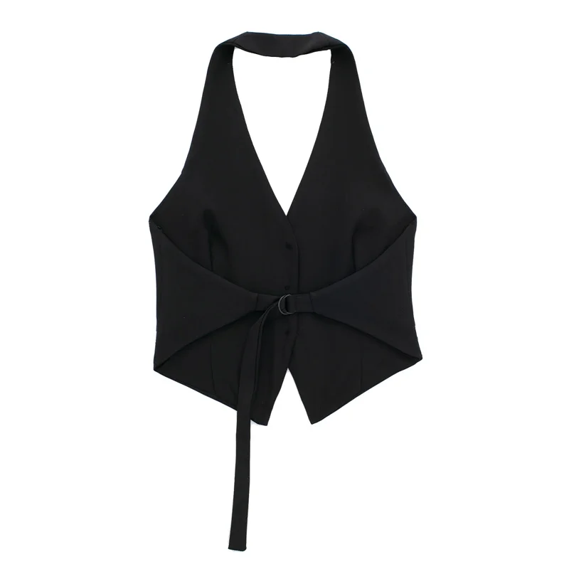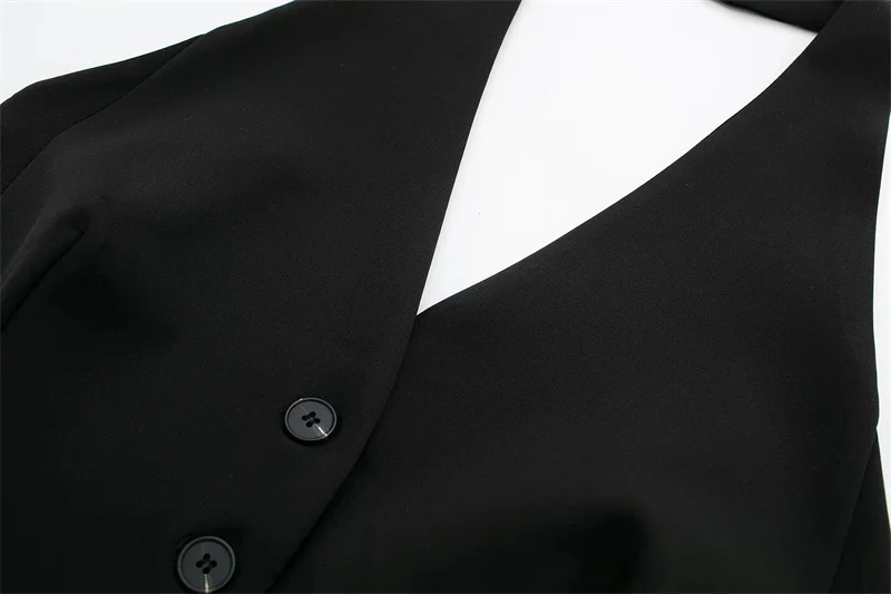 Color: black, Size: L - MUJER Off Shoulder Sleeveless Vest Women Black White Cropped Vest Woman Fashion Backless V Neck Short Coats Summer Waistcoat