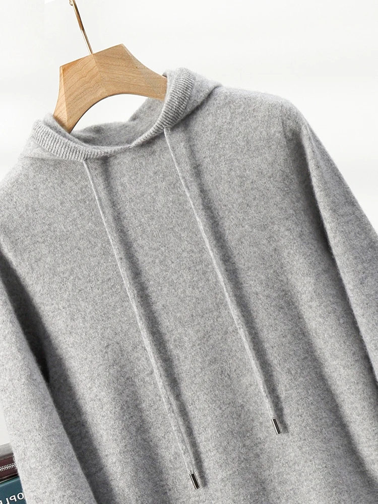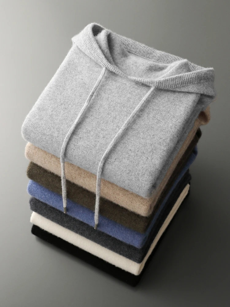 Color: black, Size: L - Yoyoselect Men's 100% Cashmere Luxury Sweater Hoodie Autumn Winter Thick Warm Hooded Pullover Casual Smart Jumpers Knitwear Top