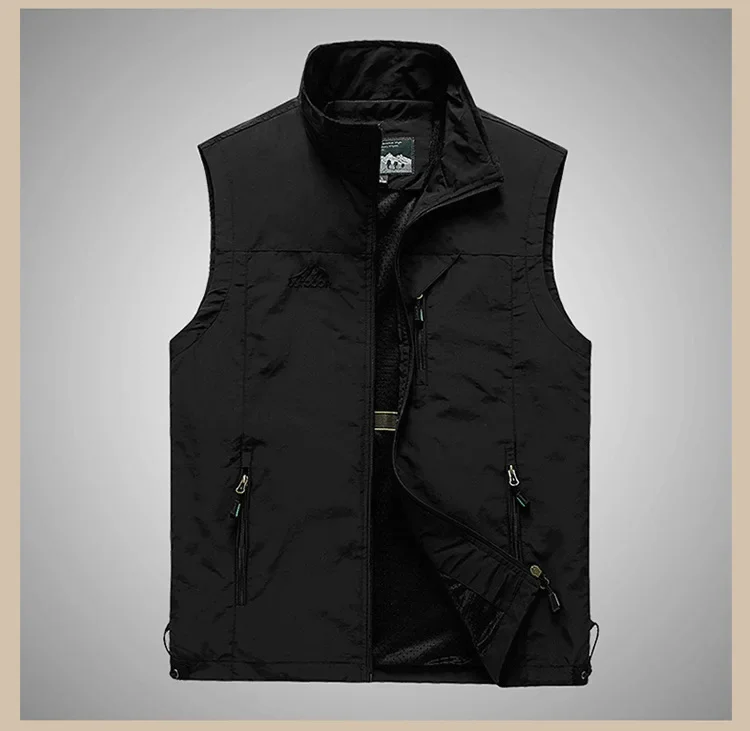 Color: black, Size: M - Autumn Men Waistcoat Outdoor Leisure Solid Sleeveless Jacket Young Middle-aged Photography Fishing Casual Vest Male summer