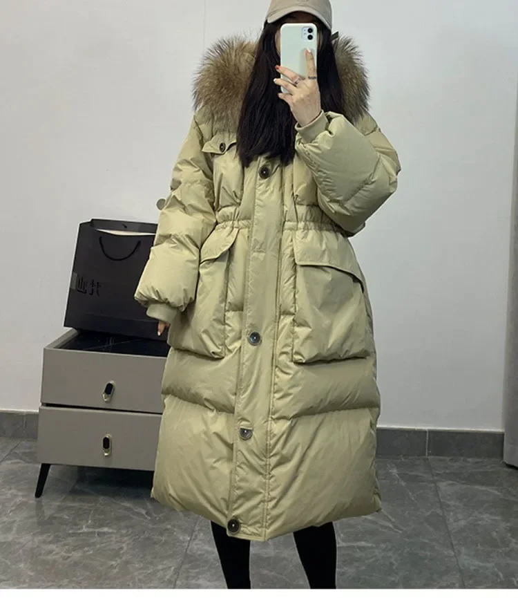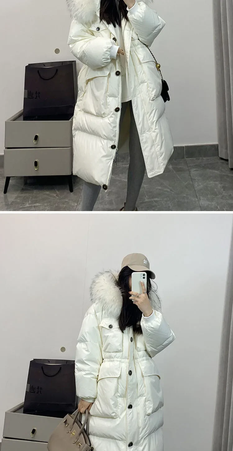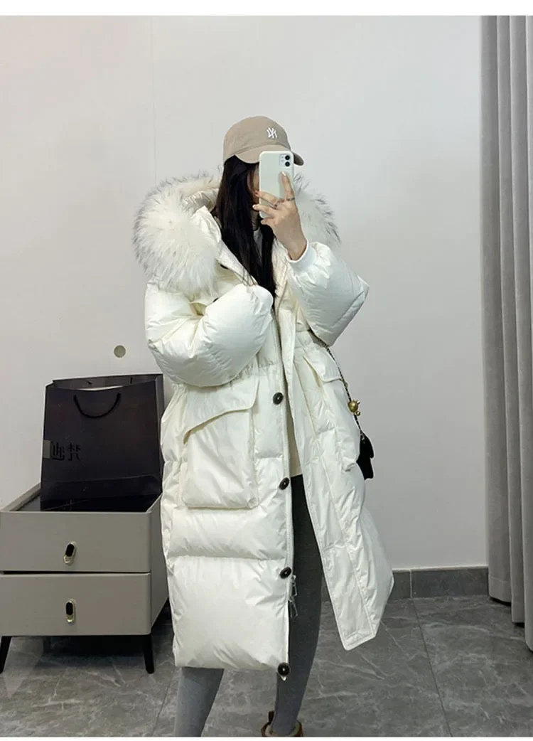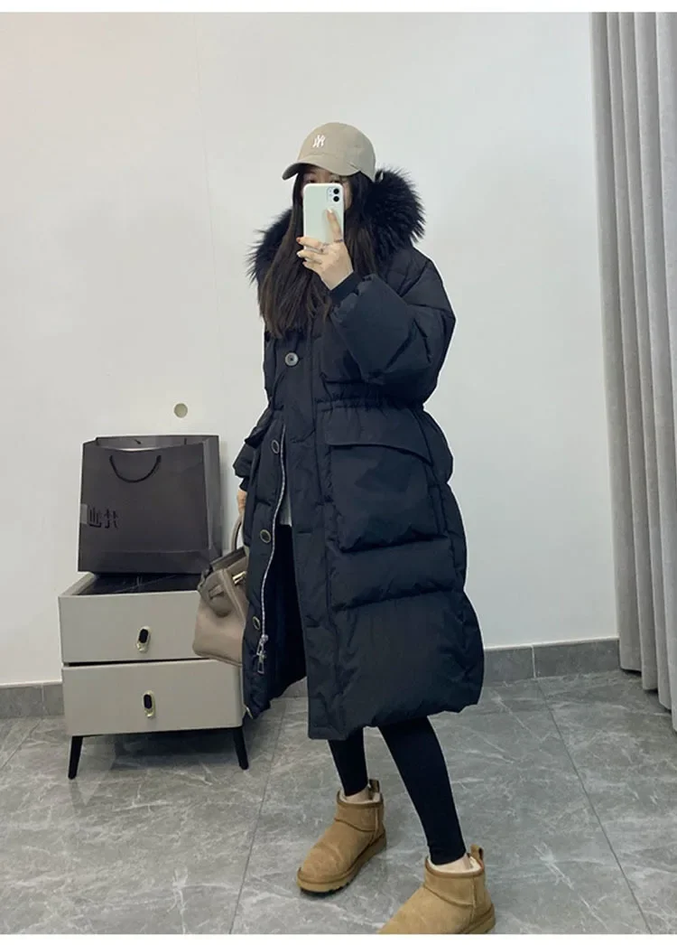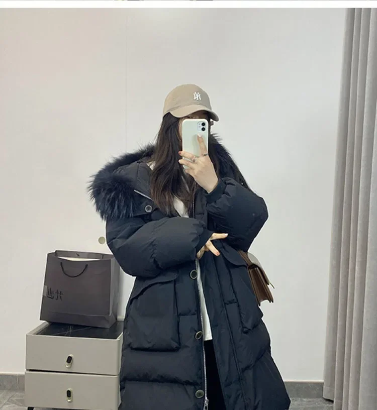 Color: black, Size: M - Down Jacket Women Waterproof Winter Long Puffer Jacket 2024 Real Raccoon Fur Hooded Duck Down Coat Female Rain Feather Parkas