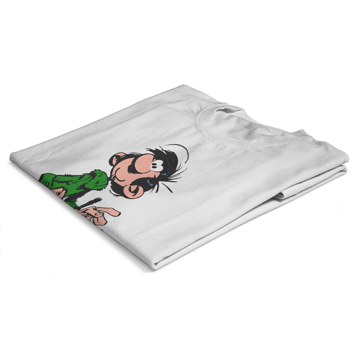 Color: black, Size: M - Gaston Lagaffe Comic Polyester TShirts Cartoon Color Big Ben Walking With Cat Classic Personalize Homme T Shirt Funny Tops