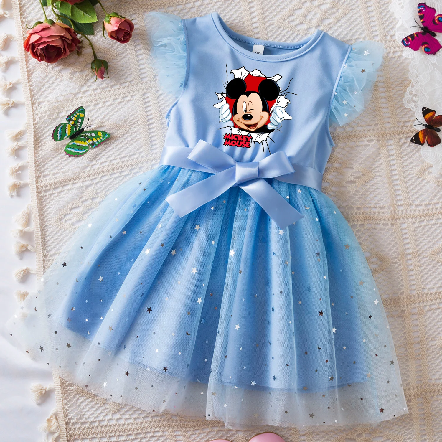 Color: black, Size: M - Mickey Minnie Mouse Girls Summer Clothes Flying Sleeves Bow Sequin Dress 2-6Y Kid Birthday Tutu Princess Dress for Baby Girl