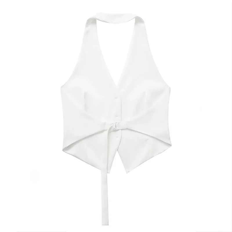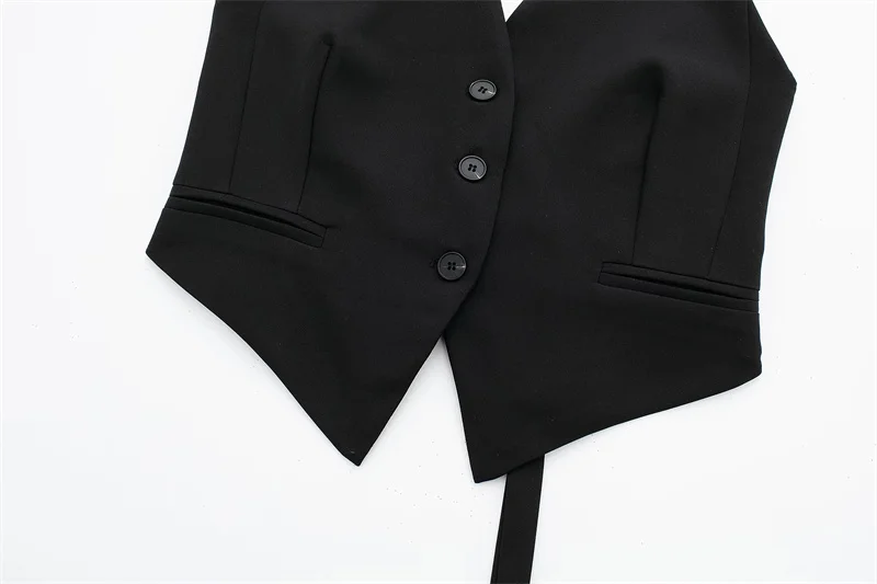 Color: black, Size: M - MUJER Off Shoulder Sleeveless Vest Women Black White Cropped Vest Woman Fashion Backless V Neck Short Coats Summer Waistcoat